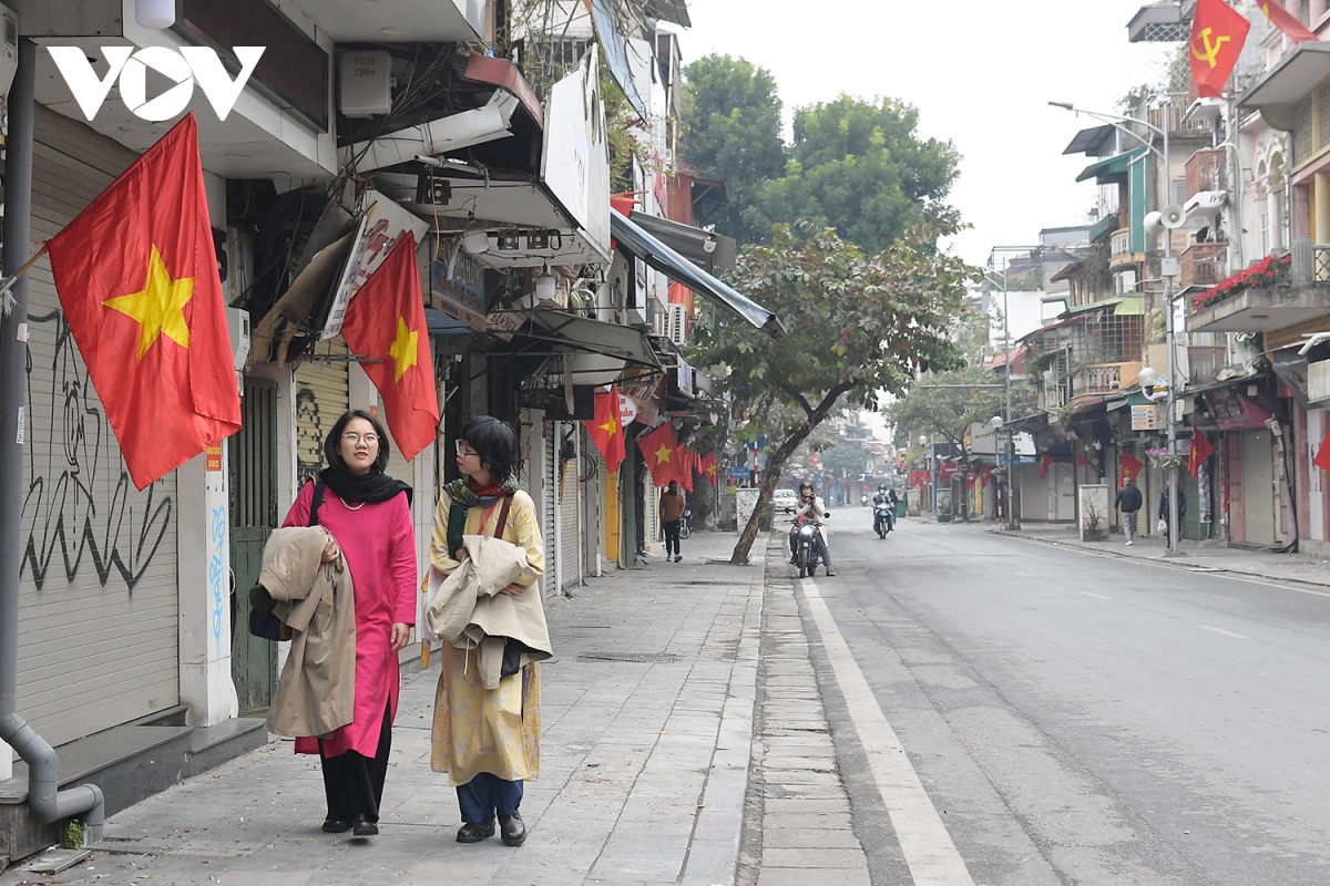 Thời tiết sáng mùng 1 se lạnh khiến cho người dân ra đường muộn hơn. |