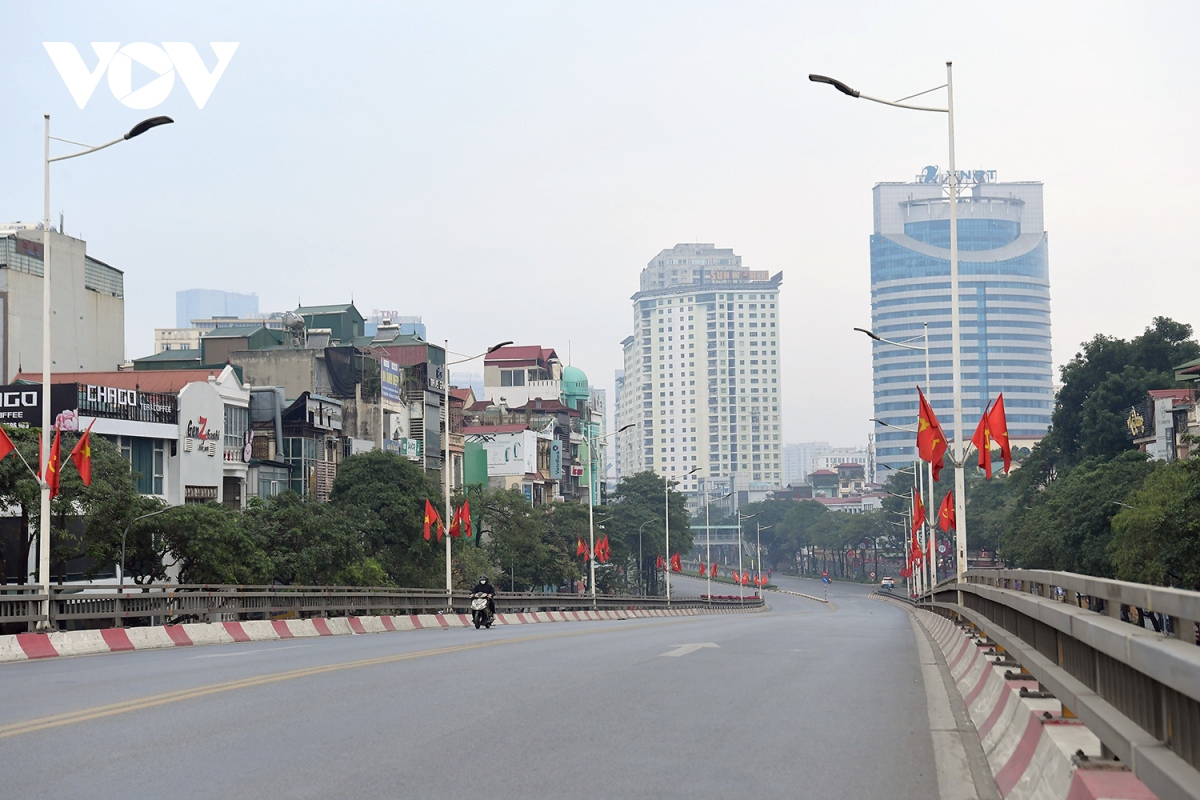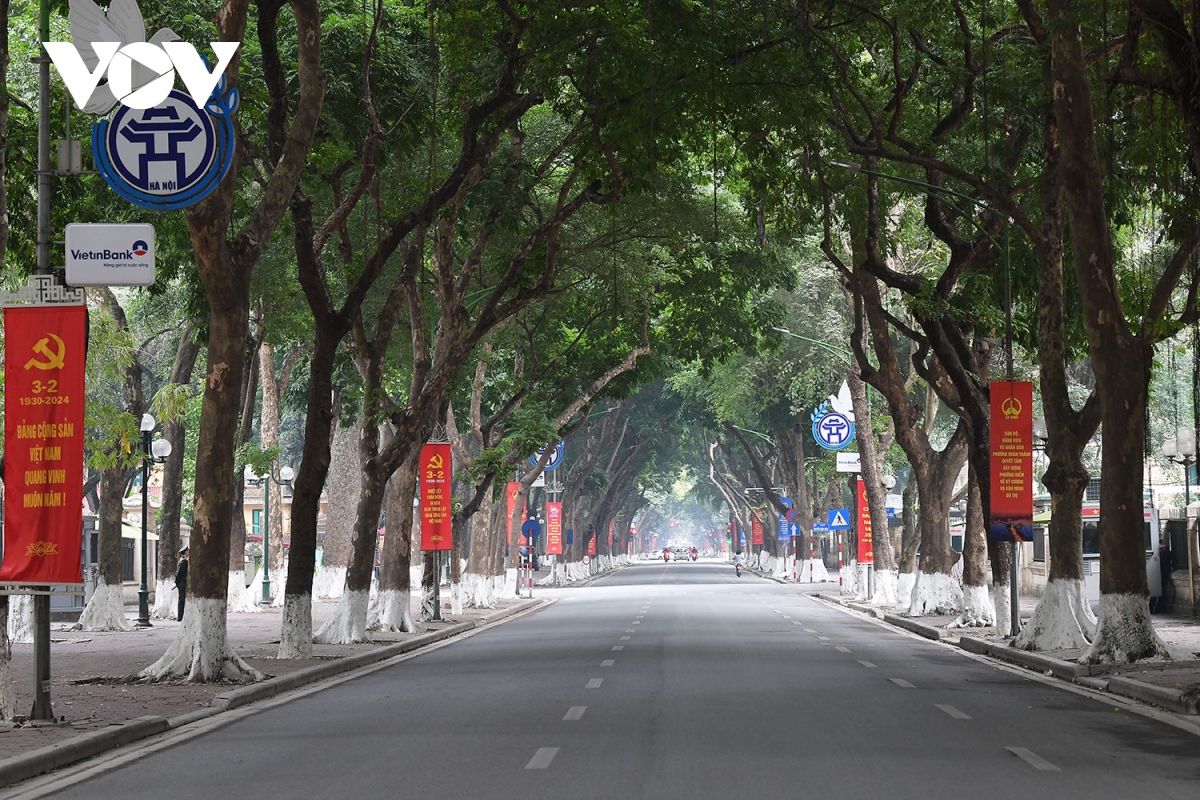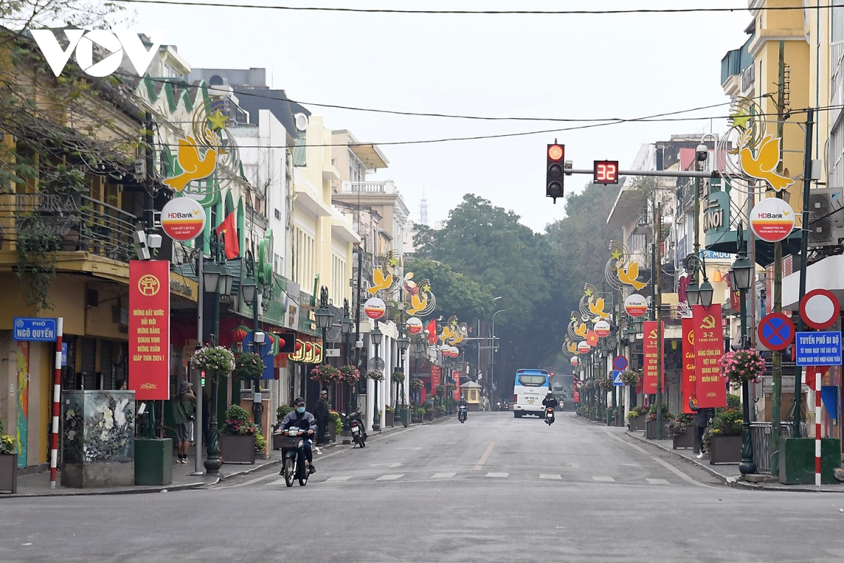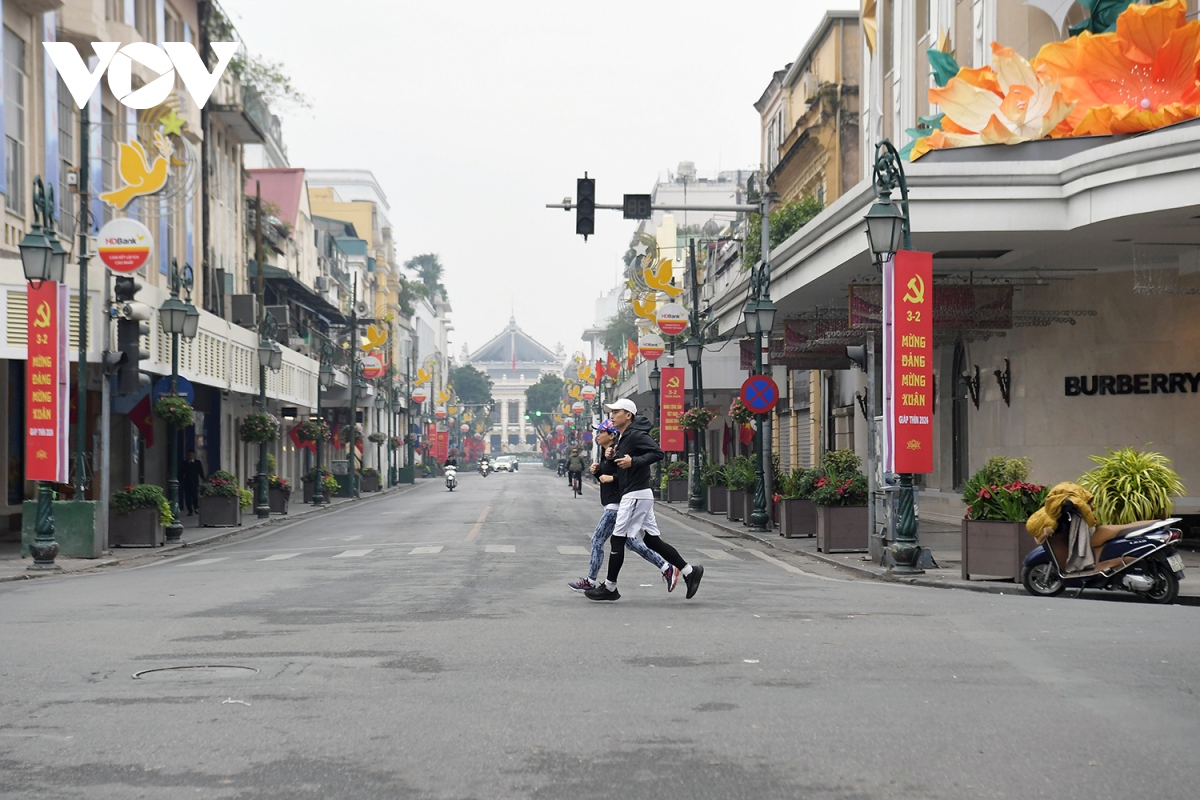 Sáng mùng 1 Tết, thay vì sự ồn ào, tấp nập là khung cảnh vắng lặng bình yên trên các con đường ở Hà Nội. |