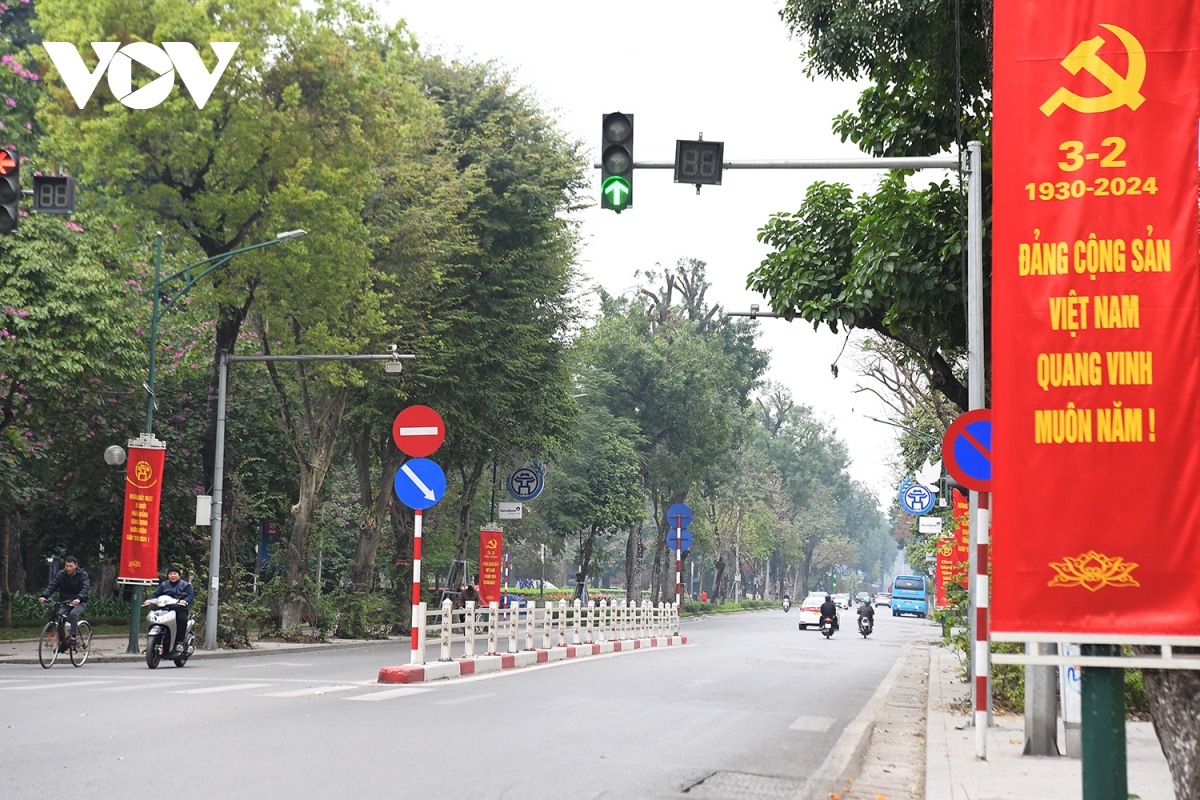 Sắc đỏ ngày Tết cổ truyền dân tộc là gam màu nổi bật trên các con phố Thủ đô. |