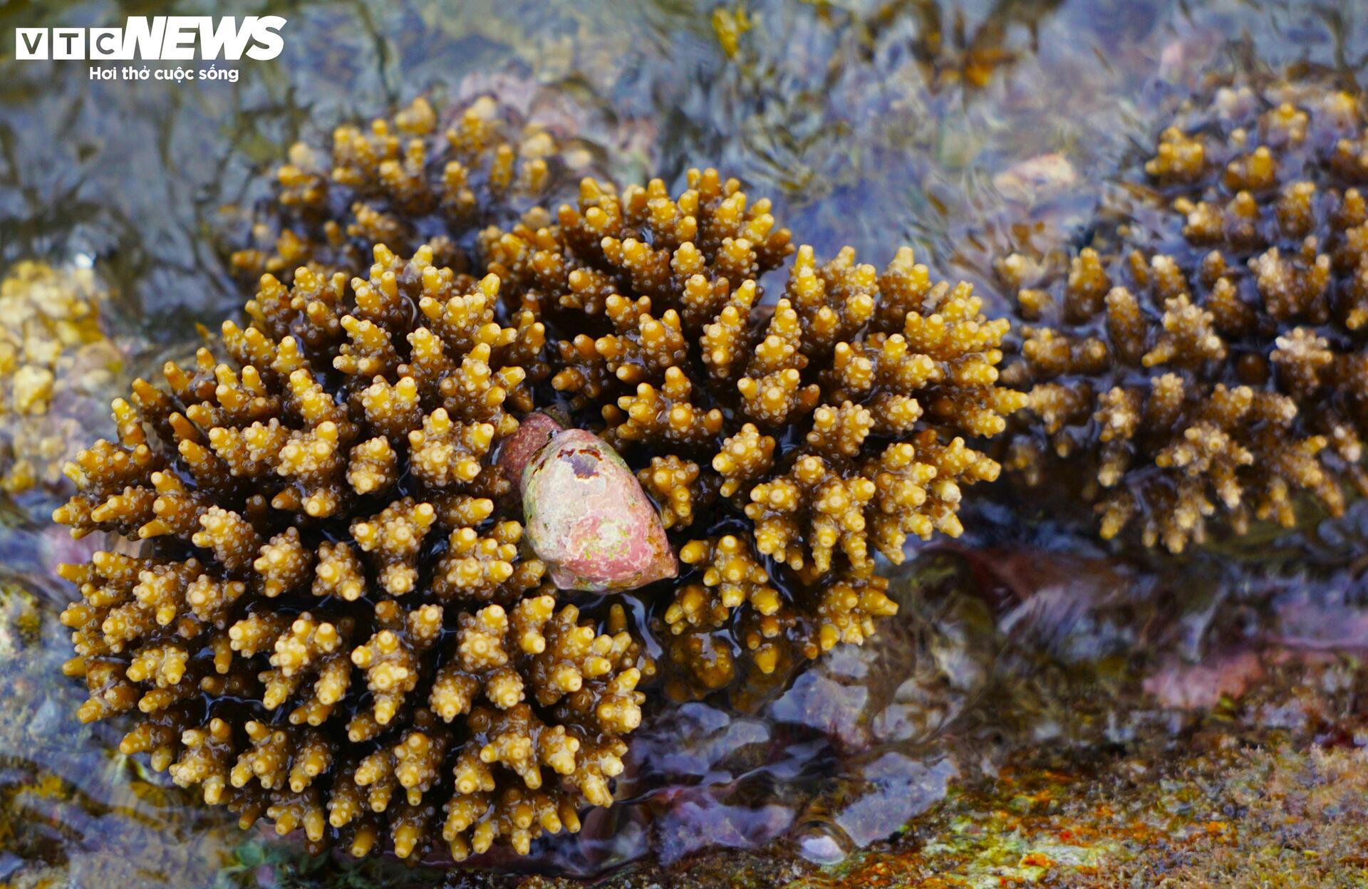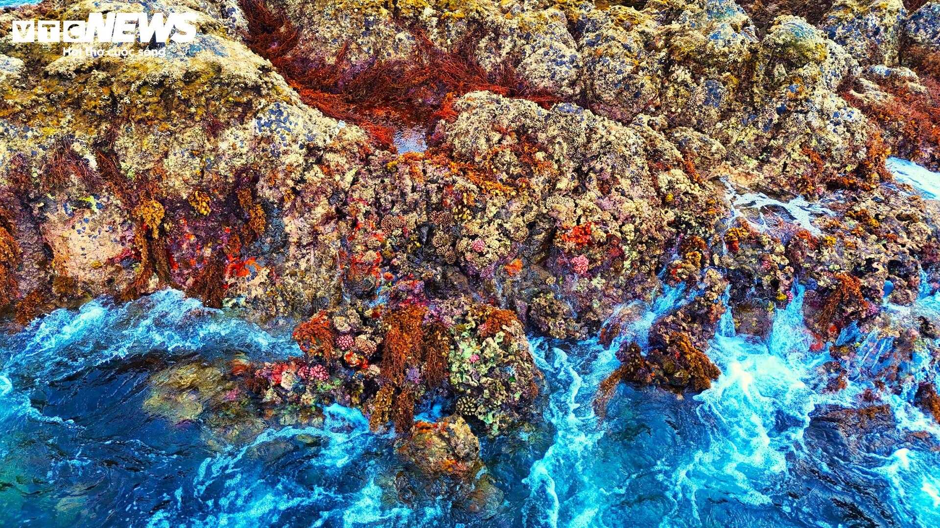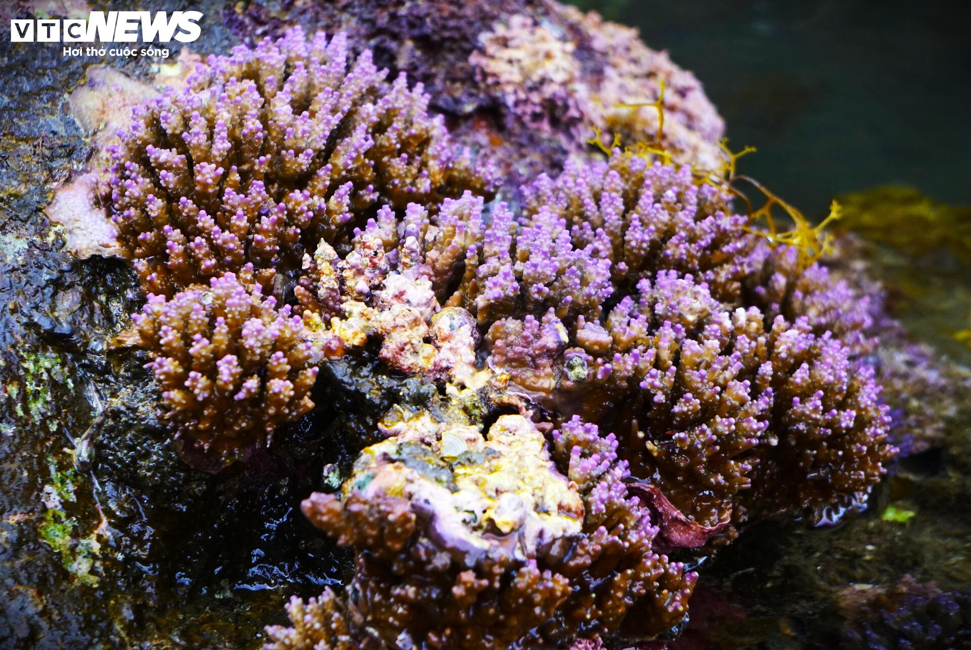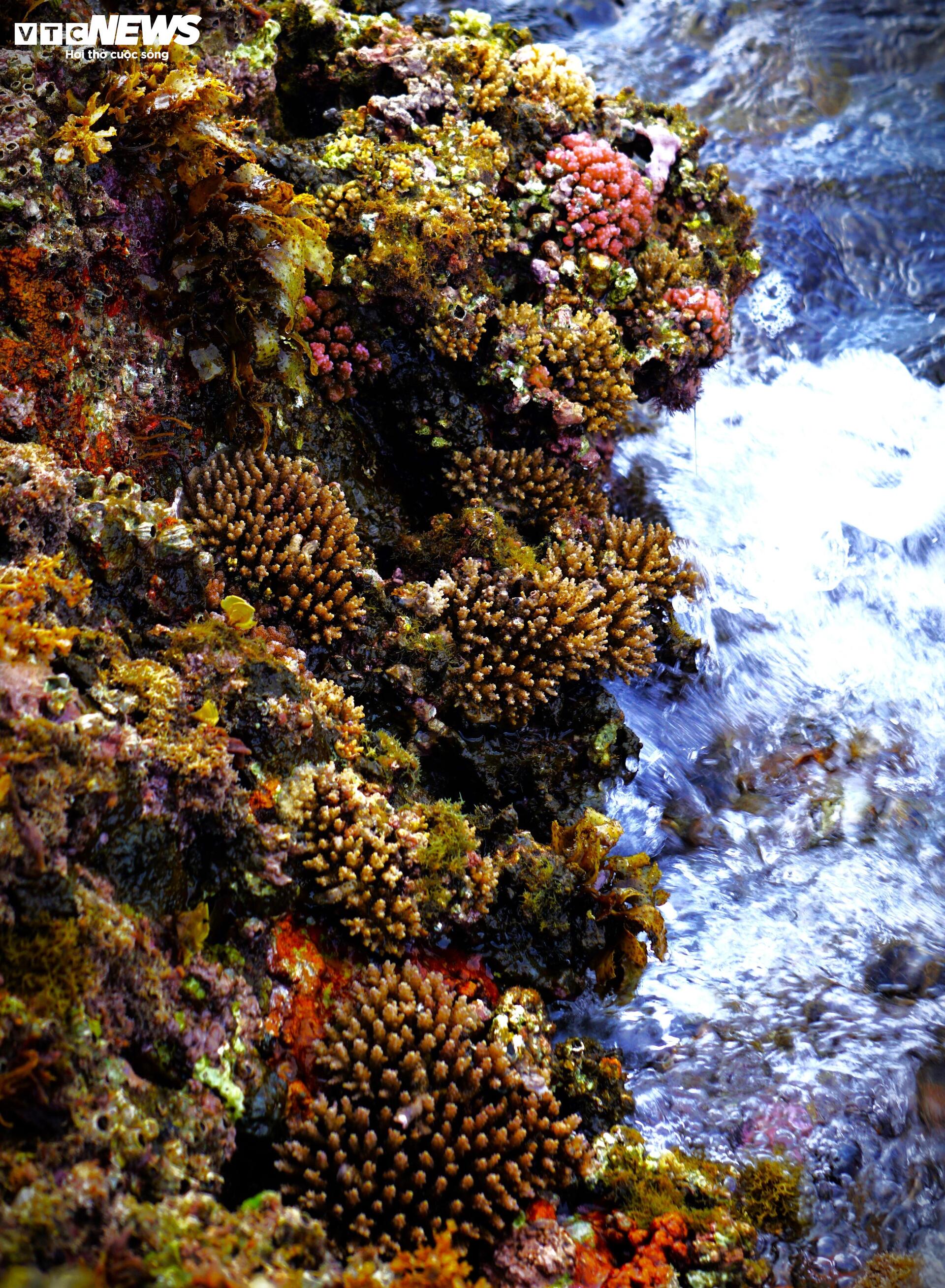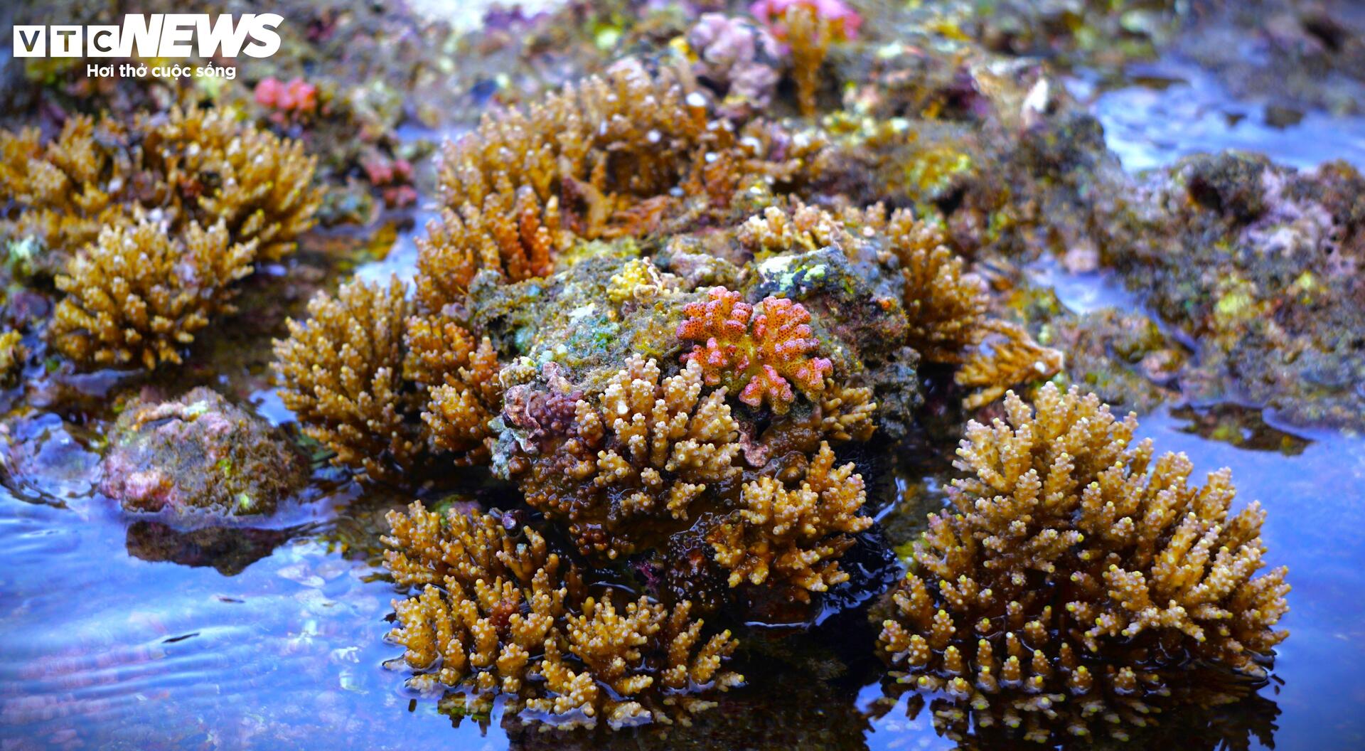 | Sau những tháng cuối năm biển động, sóng lớn, những ngày đầu năm mới, rạn san hô đua nhau đâm chồi, nhú mình mãnh liệt trên những gành đá. |