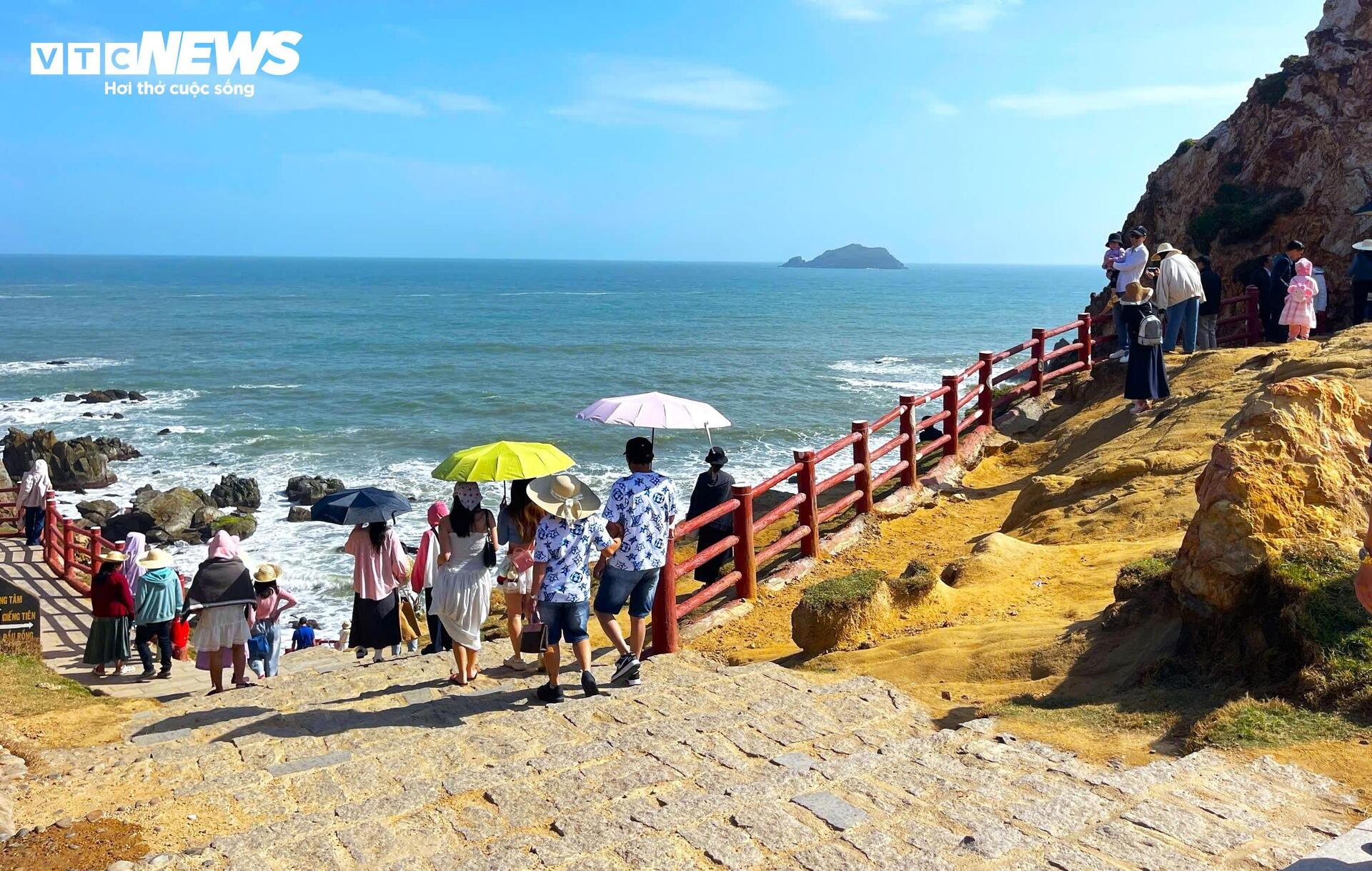| Sáng mùng 3 Tết tiết trời nắng đẹp, người dân và du khách đổ xô về khu vực Bãi Dứa, Eo Gió. |