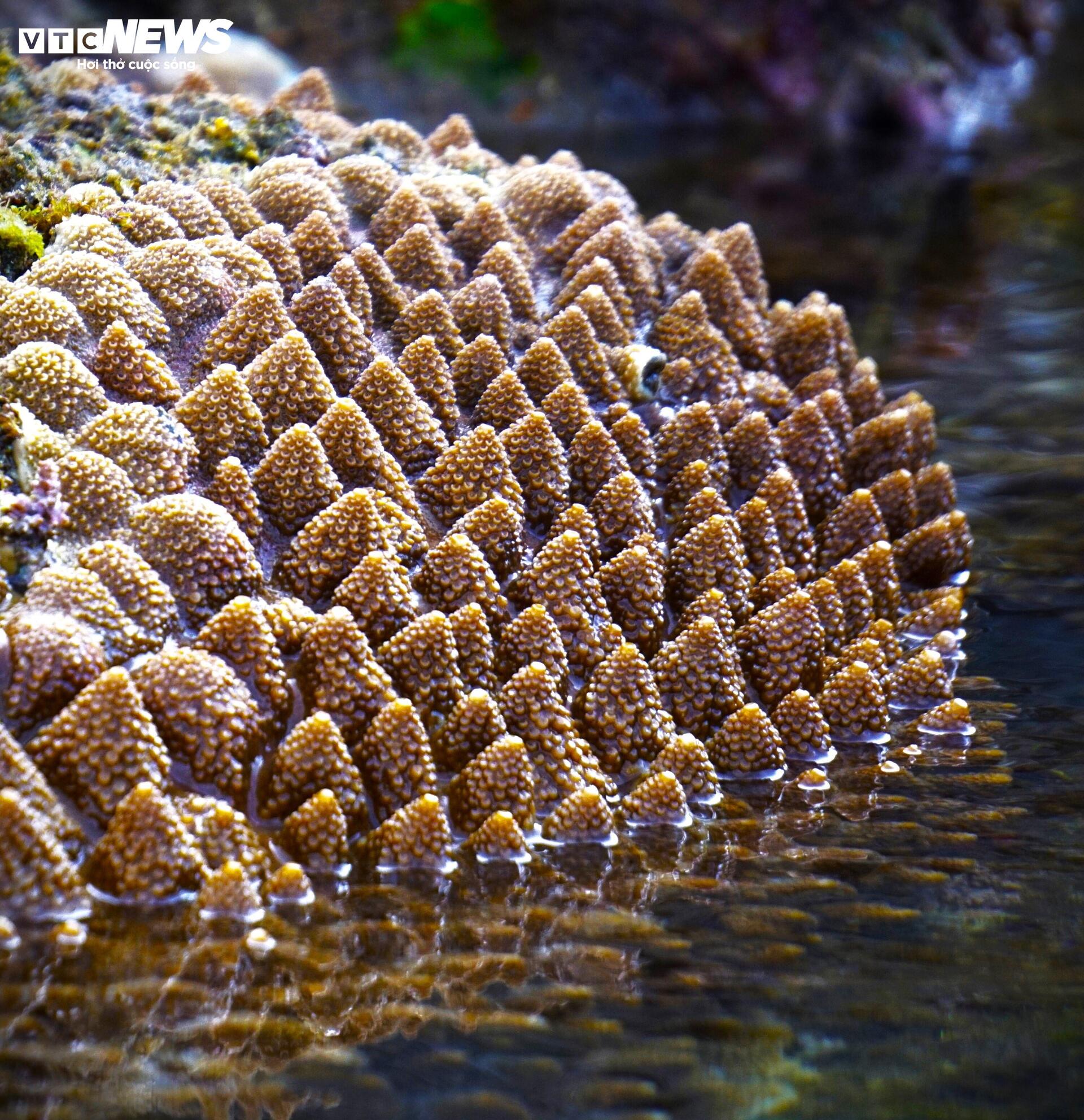 | Nhiều rặng san hô cứng tại khu vực Bãi Dứa có hình thù độc đáo, kết thành từng cụm tỏa tròn như mái nhà thờ. |