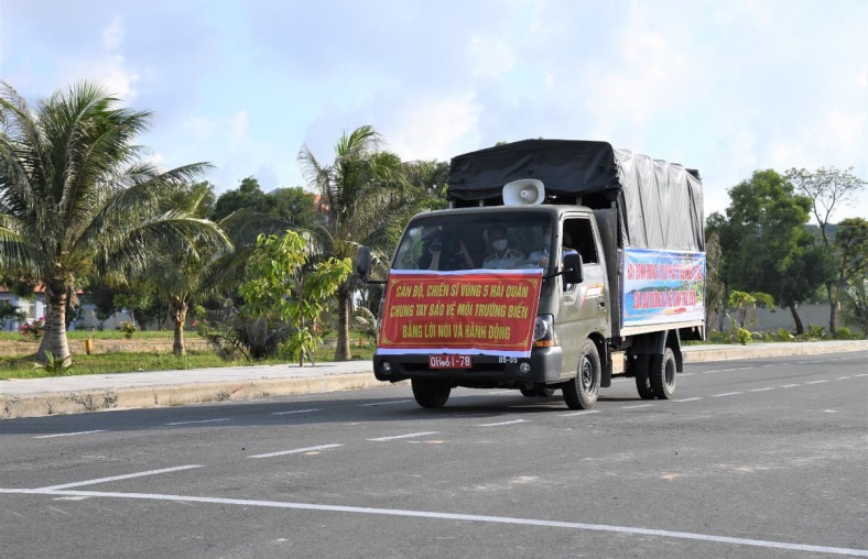 Xe lưu động của Vùng 5 Hải quân tuyên truyền bảo vệ môi trường và phòng, chống tác hại của rác thải nhựa. Ảnh: baotainguyenmoitruong.vn |