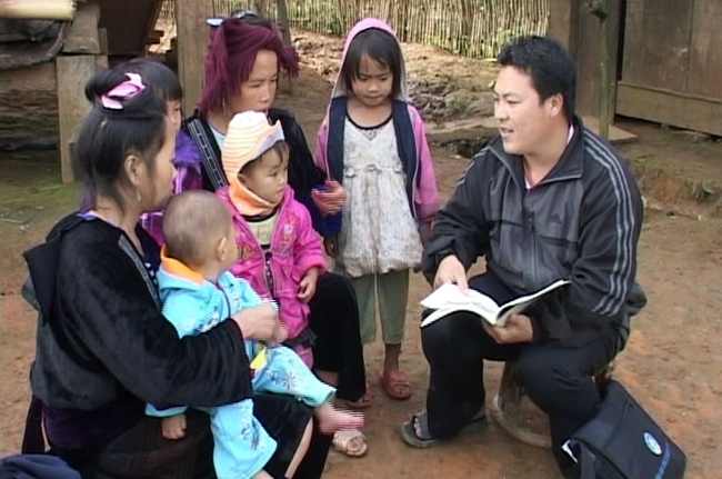 Cán bộ dân số xã Xín Chả, huyện Tủa Chùa (Điện Biên) tuyên truyền, vận động về Dân số - Kế hoạch hóa gia đình cho người dân. Ảnh: nhandan.vn