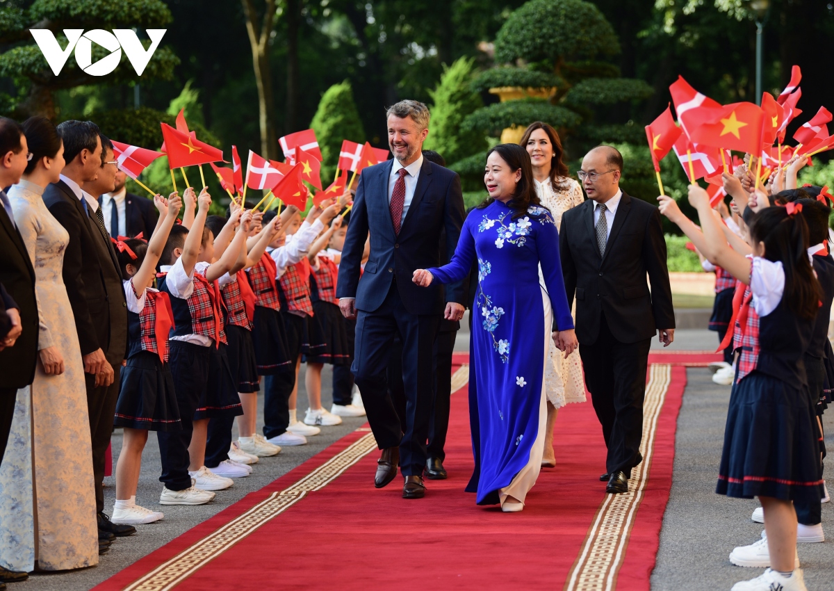 Sáng 1/11, tại Phủ Chủ tịch, Phó Chủ tịch nước Võ Thị Ánh Xuân chủ trì Lễ đón Thái tử kế vị Đan Mạch Frederik và Công nương phu nhân Mary Elizabeth. |