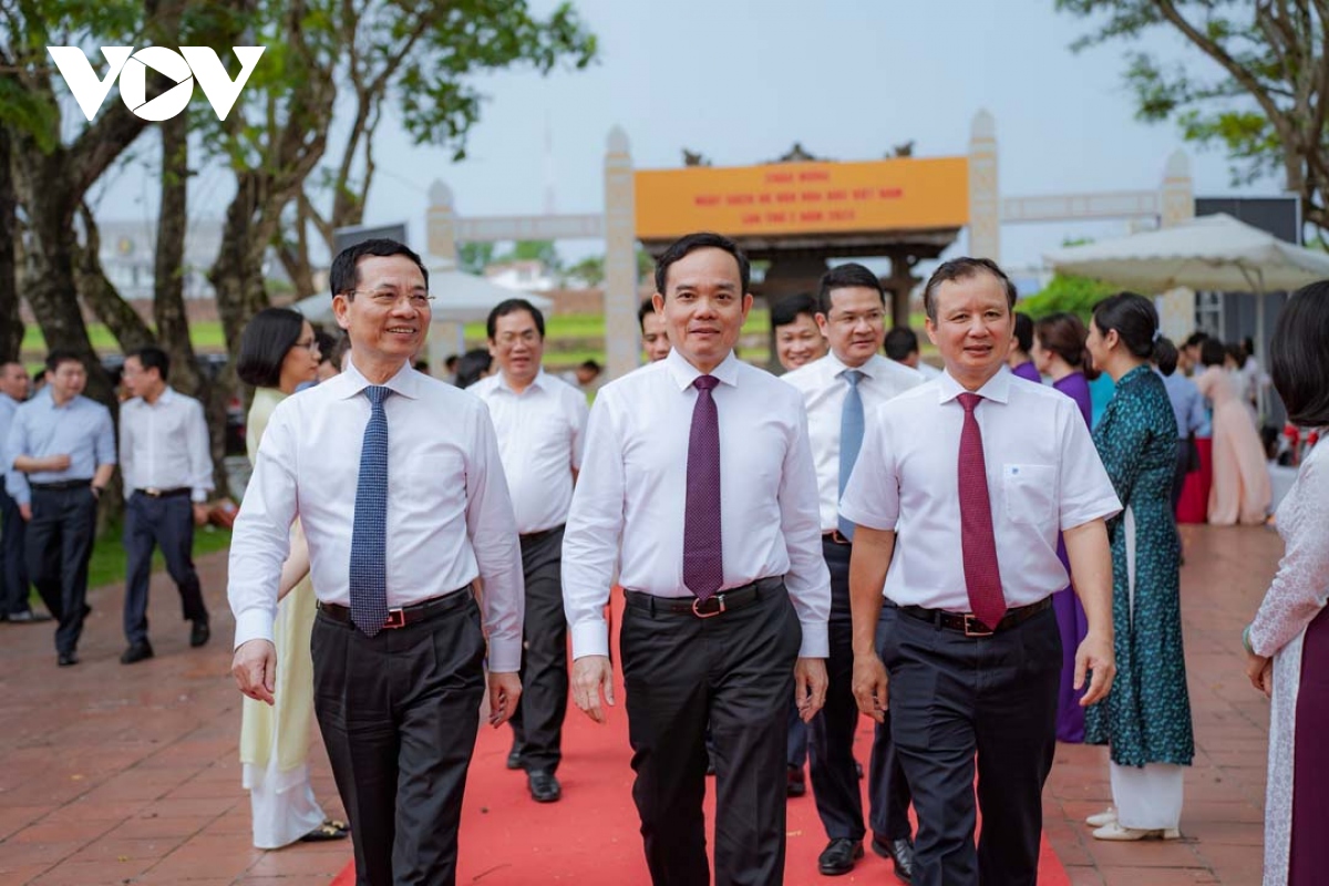 Đến dự có Ủy viên Trung ương Đảng: Phó Thủ tướng Chính phủ Trần Lưu Quang (giữa); Bộ trưởng Thông tin và Truyền thông, Phó Trưởng Ban Tuyên giáo Trung ương, Phó Chủ tịch Ủy ban Quốc gia về Chuyển đổi số Nguyễn Mạnh Hùng (trái); Bí thư Tỉnh ủy, Chủ tịch HĐND tỉnh, Trưởng đoàn đại biểu Quốc hội tỉnh Thừa Thiên Huế Lê Trường Lưu, cùng đại diện lãnh đạo các ban, bộ, ngành của Trung ương và các địa phương. |