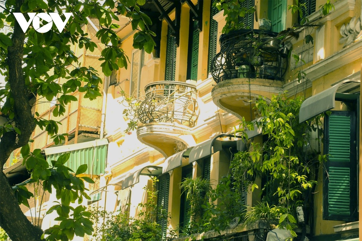 Vệt nắng Thu trải vàng trên những căn nhà phố cổ Hoàn Kiếm. |