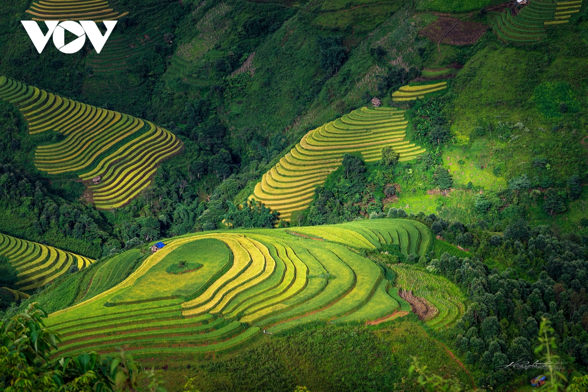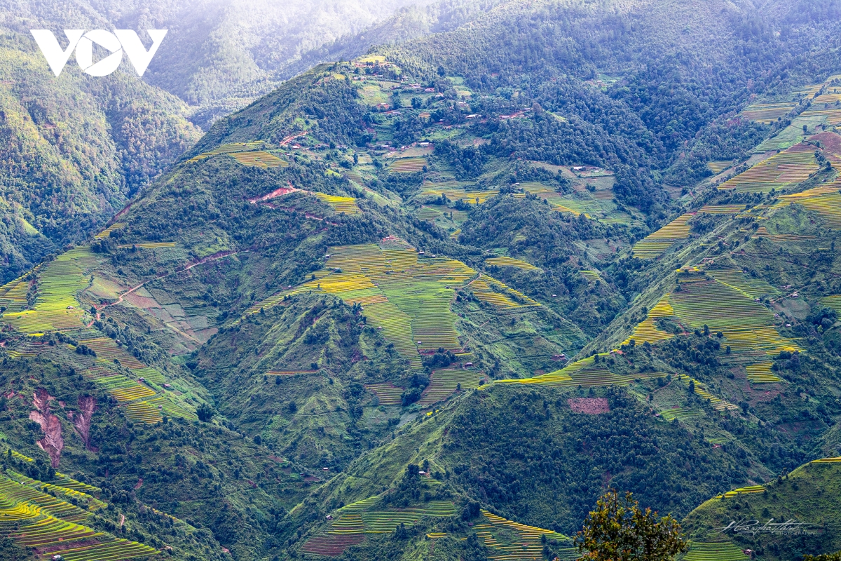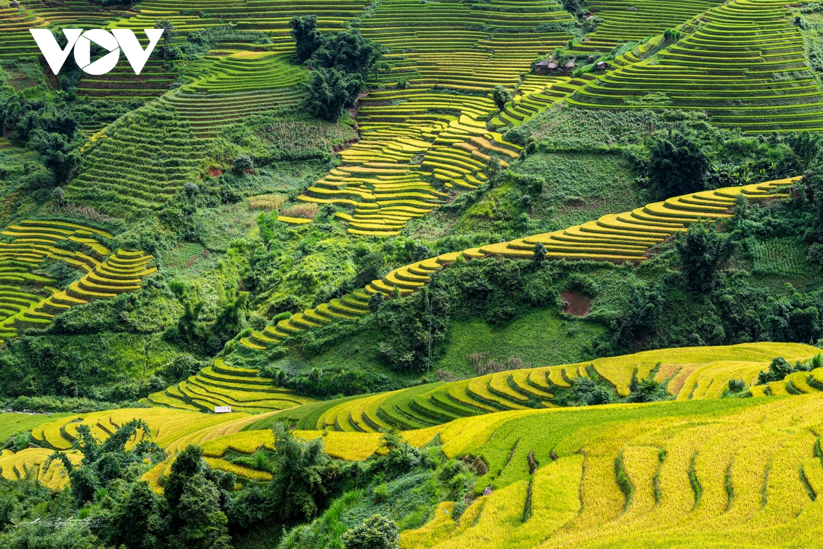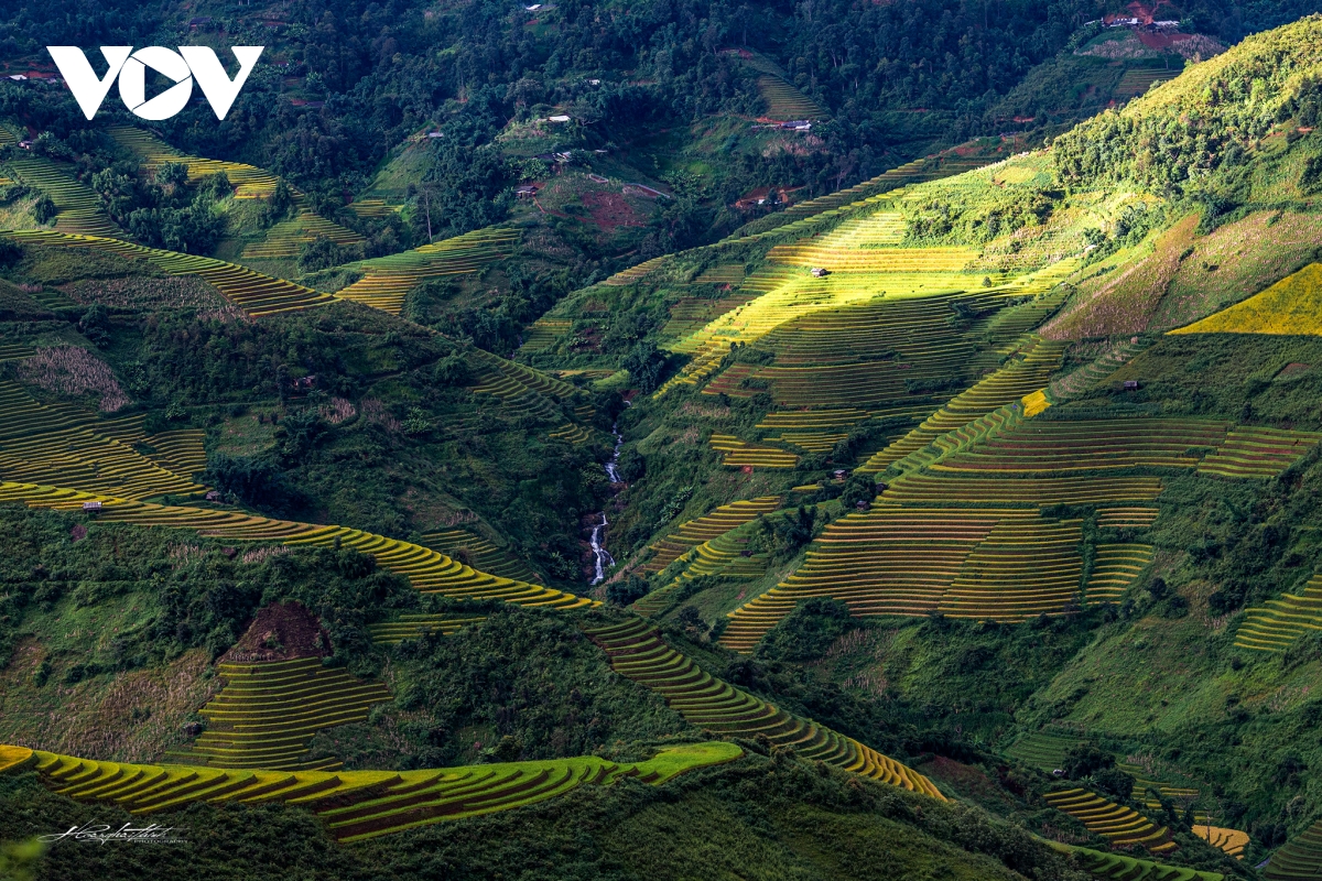 Cảnh quan những ruộng bậc thang hình mâm xôi, rừng, khe suối...tầng tầng, lớp lớp xếp lên nhau vô cùng ngoạn mục./.