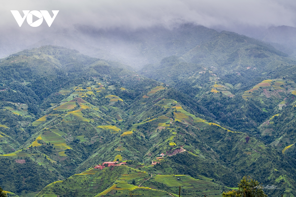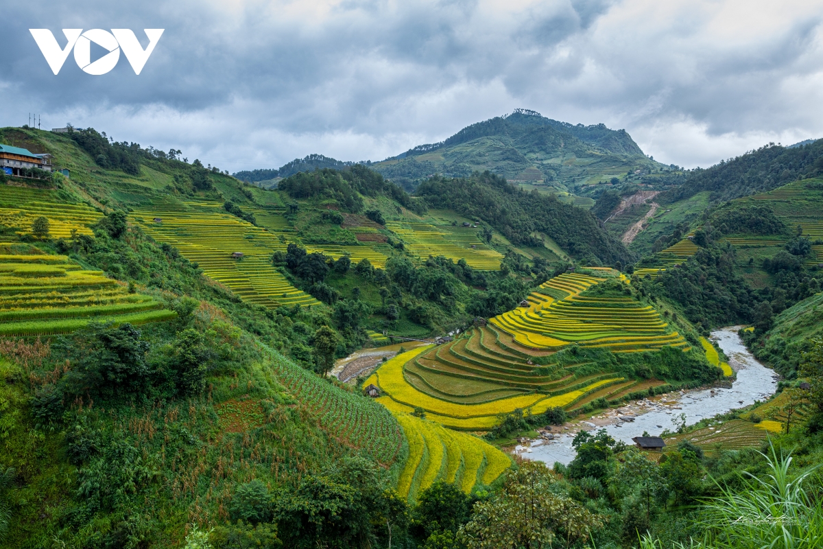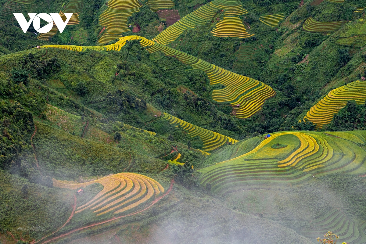 Đến Mù Cang Chải mùa này, du khách có dịp chiêm ngưỡng những đồng lúa chín vàng uốn lượn quanh co, tạo nên một cảnh đẹp không ở nơi đâu có.