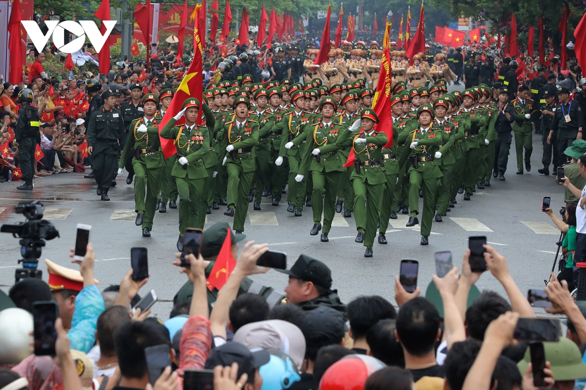 Những tiếng hò reo vang dội, những bản nhạc hùng tráng vang lên dọc các con phố đoàn quân đi qua. |