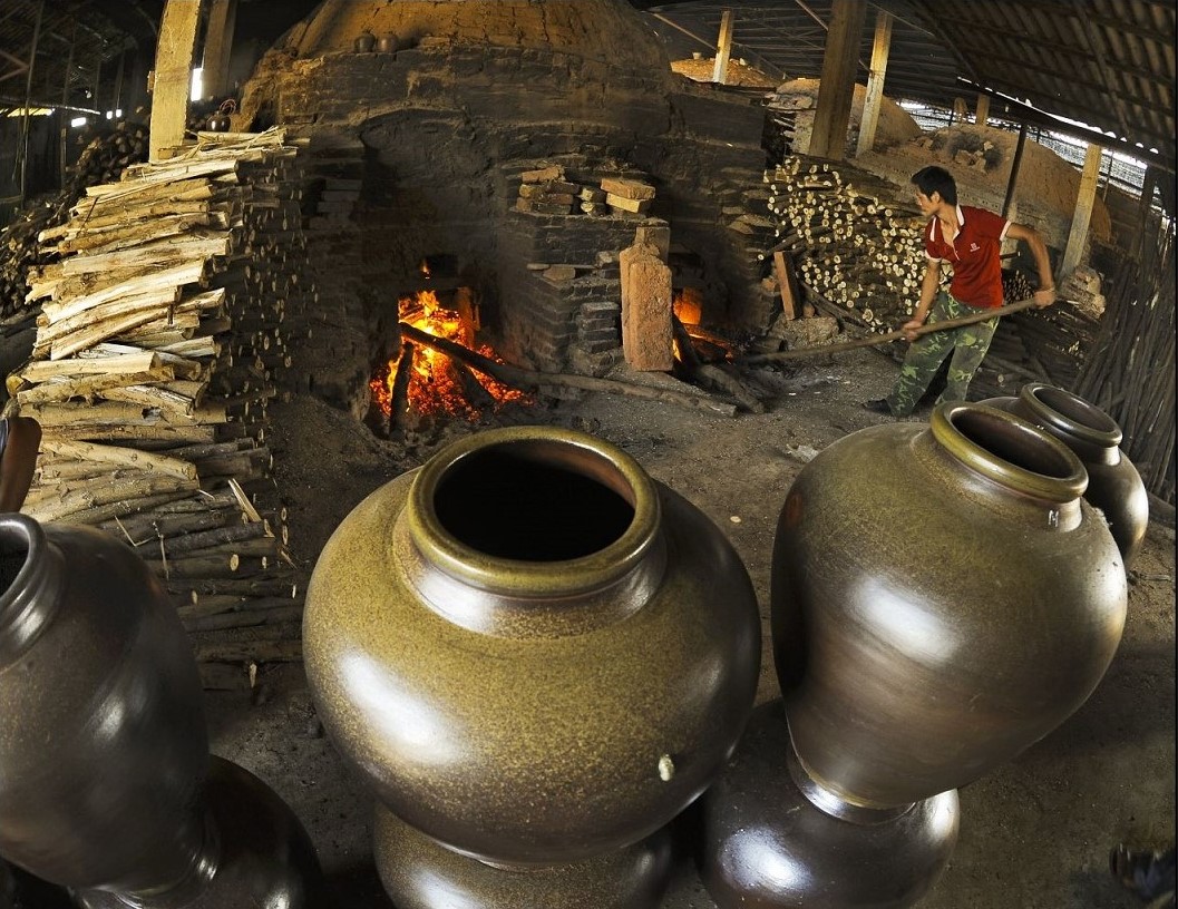 Đốt lò nung gốm. |