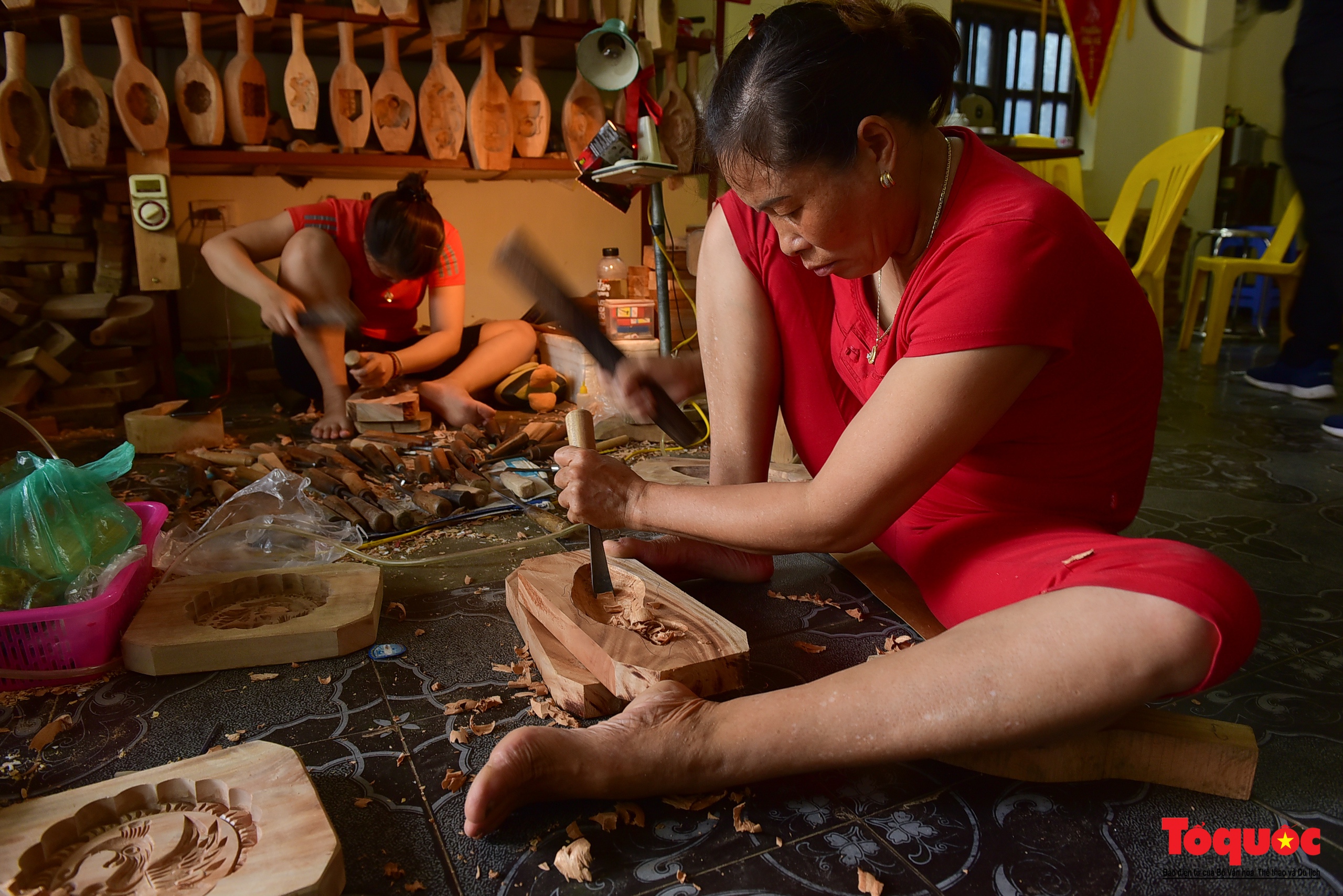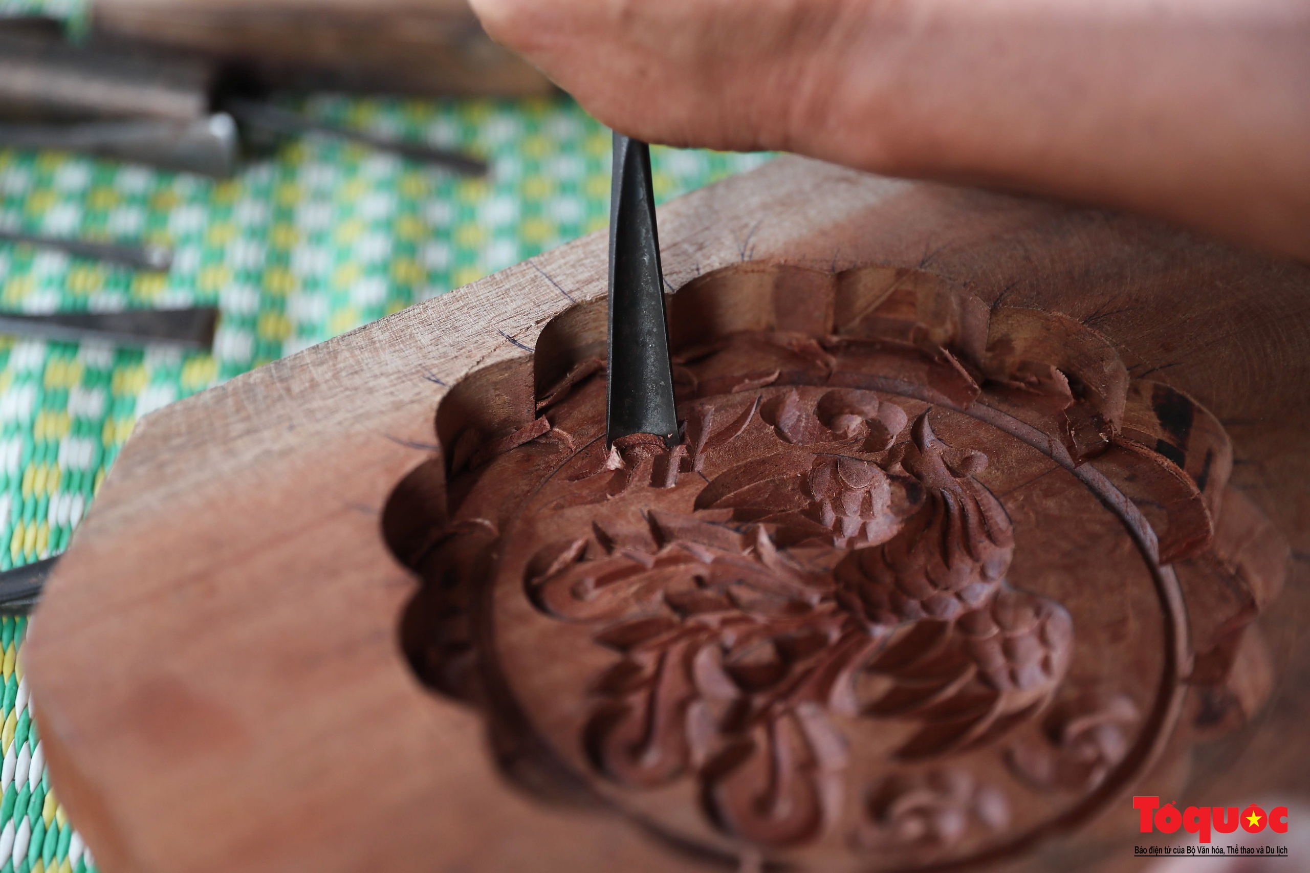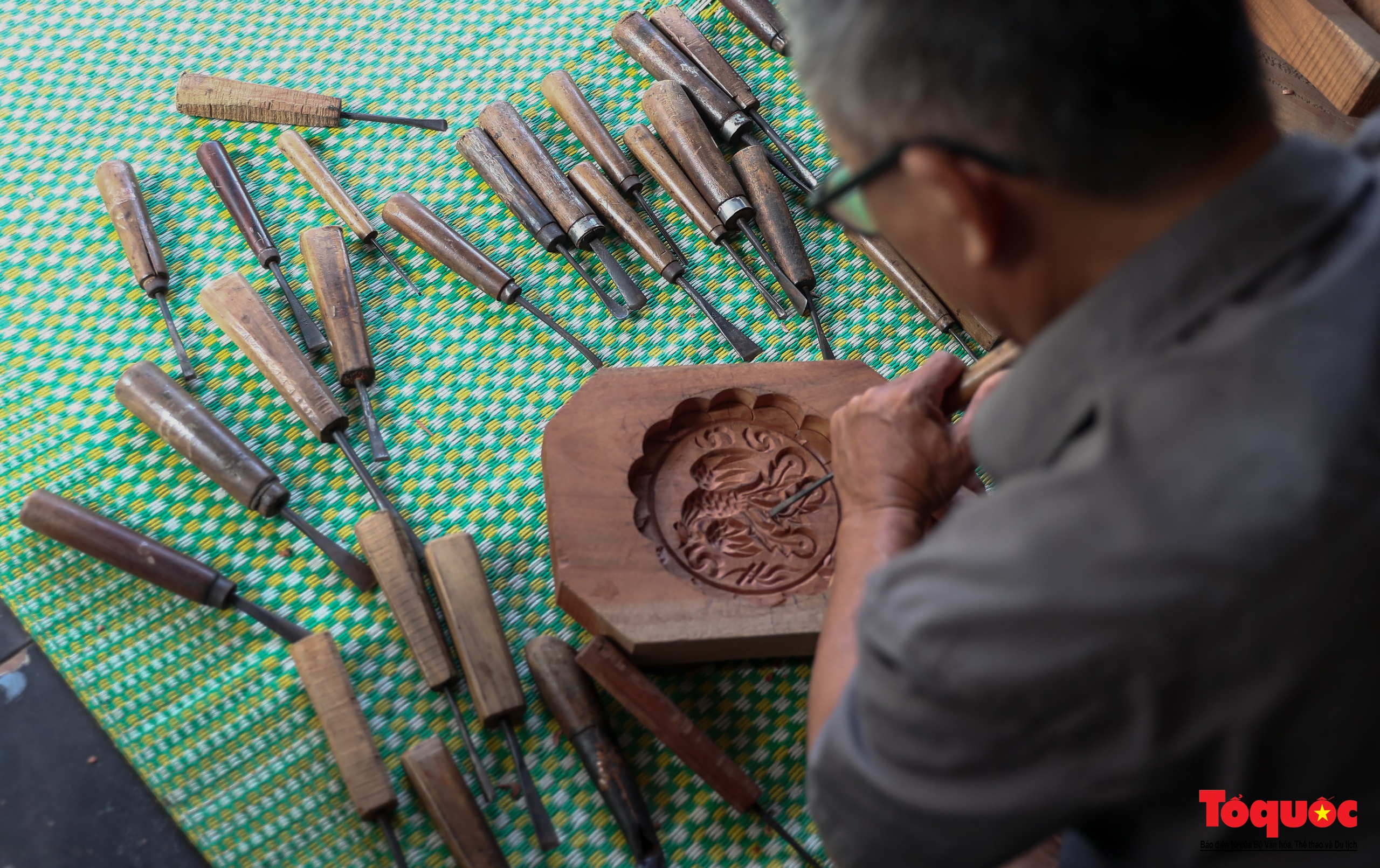 | Đục tạo hoa văn chính là công đoạn cầu kỳ và quan trọng nhất. Đường nét trang trí cho khuôn phải làm hoàn toàn thủ công. Công đoạn này đòi hỏi người nghệ nhân phải hết sức khéo léo, tỉ mỉ để làm sao cho hoa văn sắc sảo, khuôn dóc không bị bám bột bánh… bánh làm ra mới đẹp mắt. Ảnh: Nam Nguyễn/toquoc.vn |