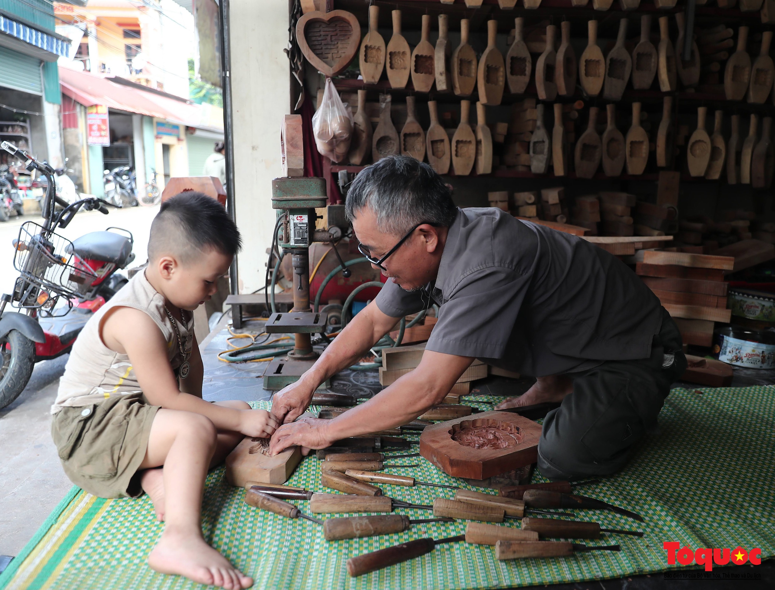 | Chia sẻ về công việc, ông Bản cho biết, khuôn bánh Trung thu trước đây được làm bằng gỗ thị nhưng hiện nay loại gỗ này rất hiếm; vì thế, gia đình ông chuyển sang dùng gỗ xà cừ vì loại gỗ này vừa dẻo, sánh lại bền, ít cong vênh sau một thời gian sử dụng. Ảnh: Nam Nguyễn/toquoc.vn |