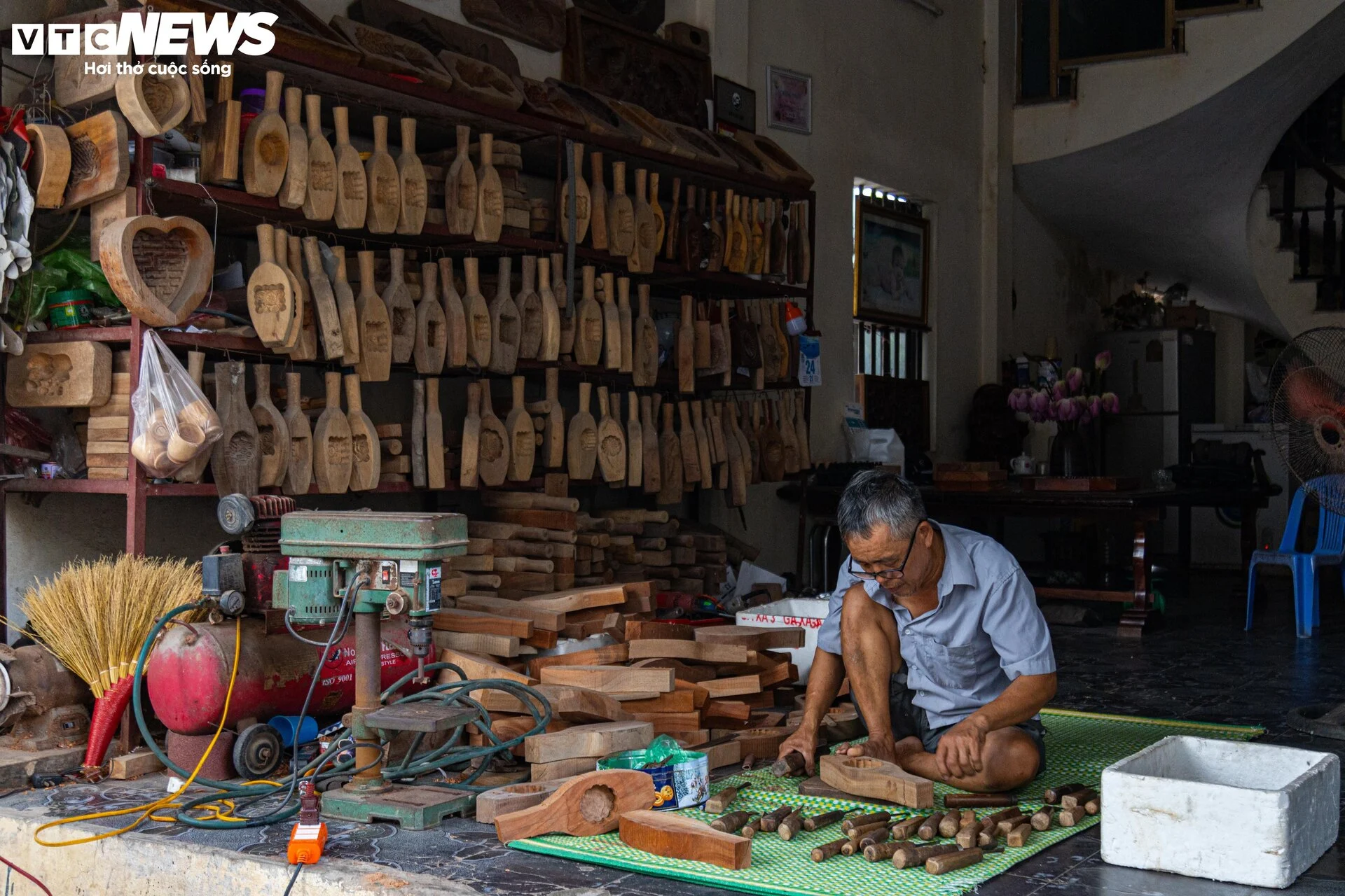 | Mỗi năm khi gần tới dịp Tết Trung thu, ông Trần Văn Bản và gia đình lại tất bật cho công việc làm khuôn bánh Trung thu phục vụ người tiêu dùng. Ảnh: Minh Đức/VTCnews |