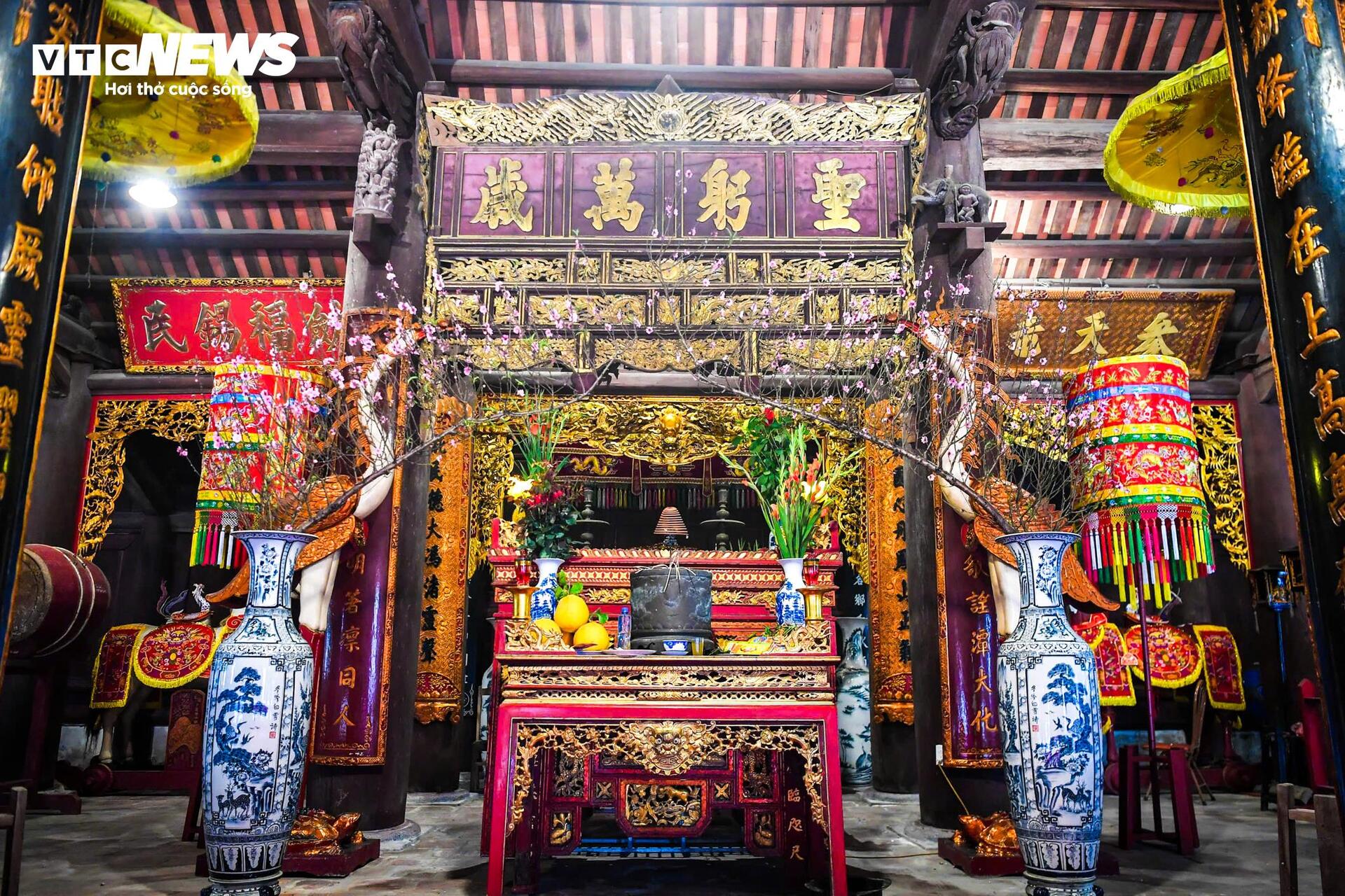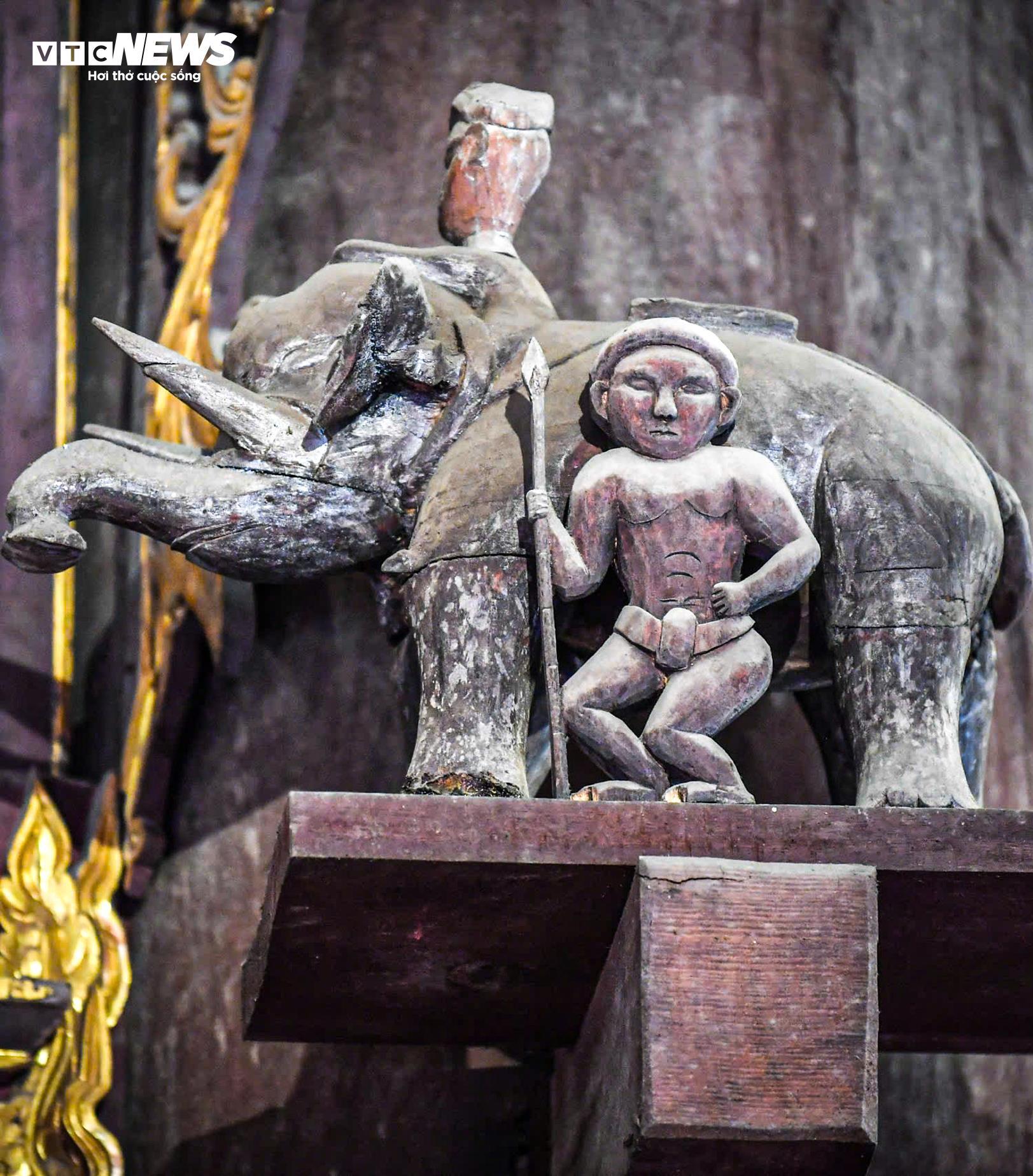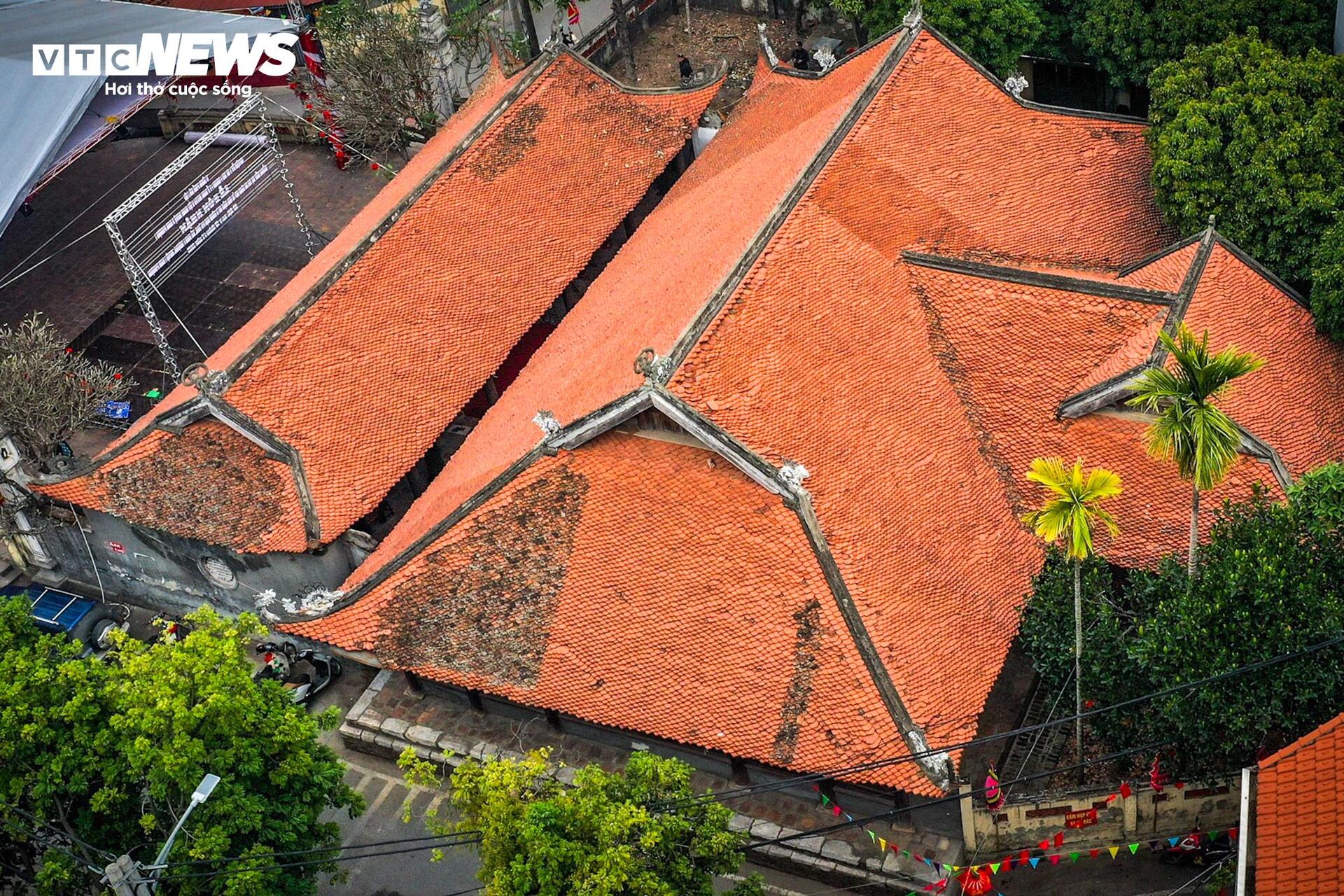 Toàn bộ cấu kiện nguyên thủy được làm bằng gỗ xoan, kết cấu theo kiểu “chồng giường - giá chiêng - hạ kẻ” với 64 cột lớn, đường kính cột lớn nhất trên 0,6 m. |