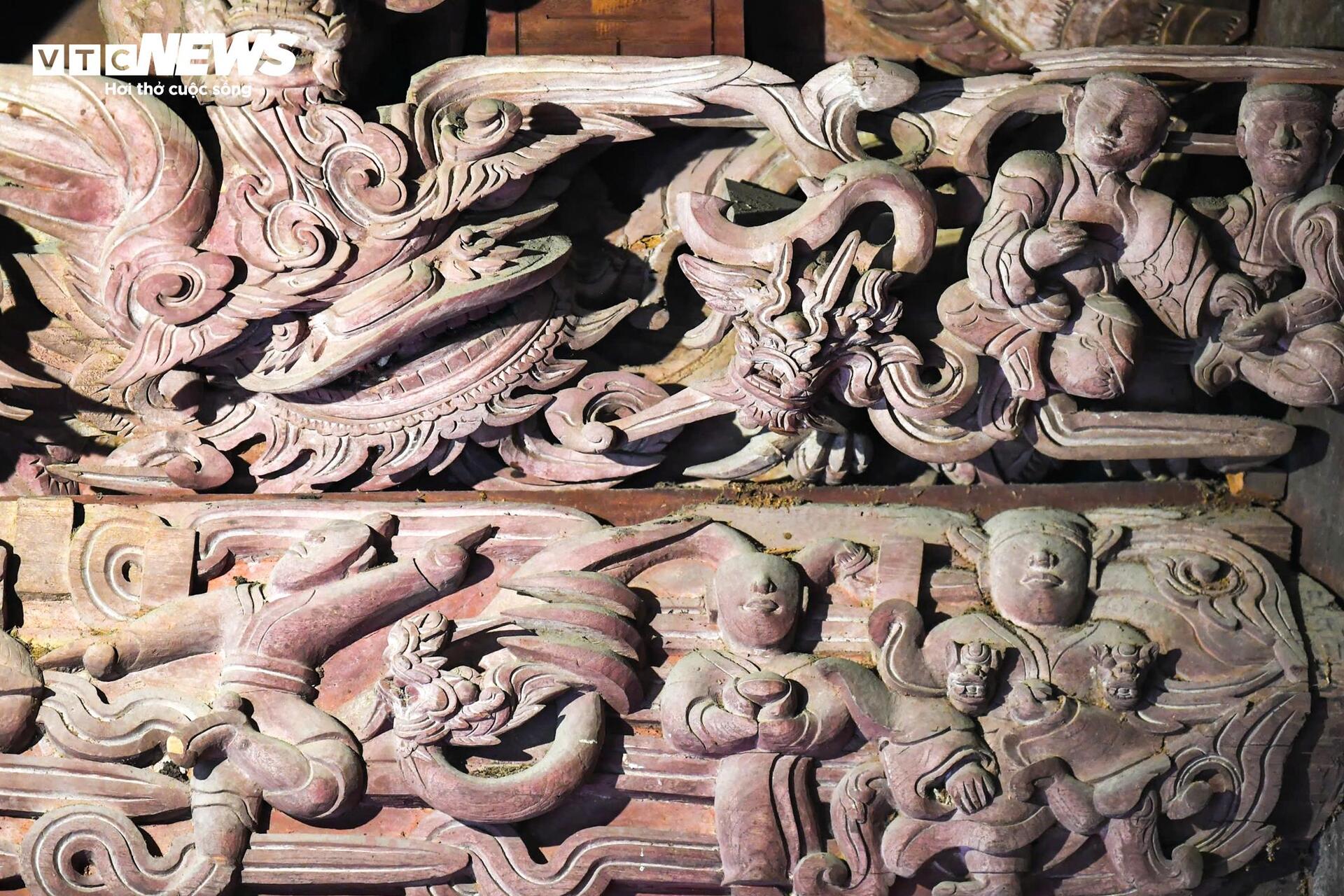 Nghệ thuật chạm khắc của đình rất đặc sắc, với gần 1.000 họa tiết mang giá trị văn hóa cao, thể hiện những hình tượng như "Vinh quy bái tổ", "Tiên tắm đầm sen" và "Đấu vật"... |