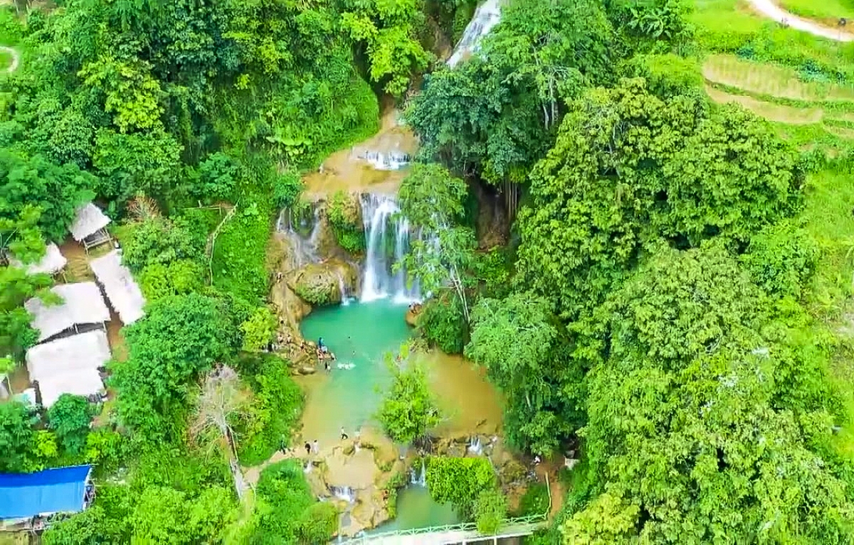 Thác Mu nhìn từ trên cao. Ảnh: UBND huyện Lạc Sơn |