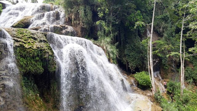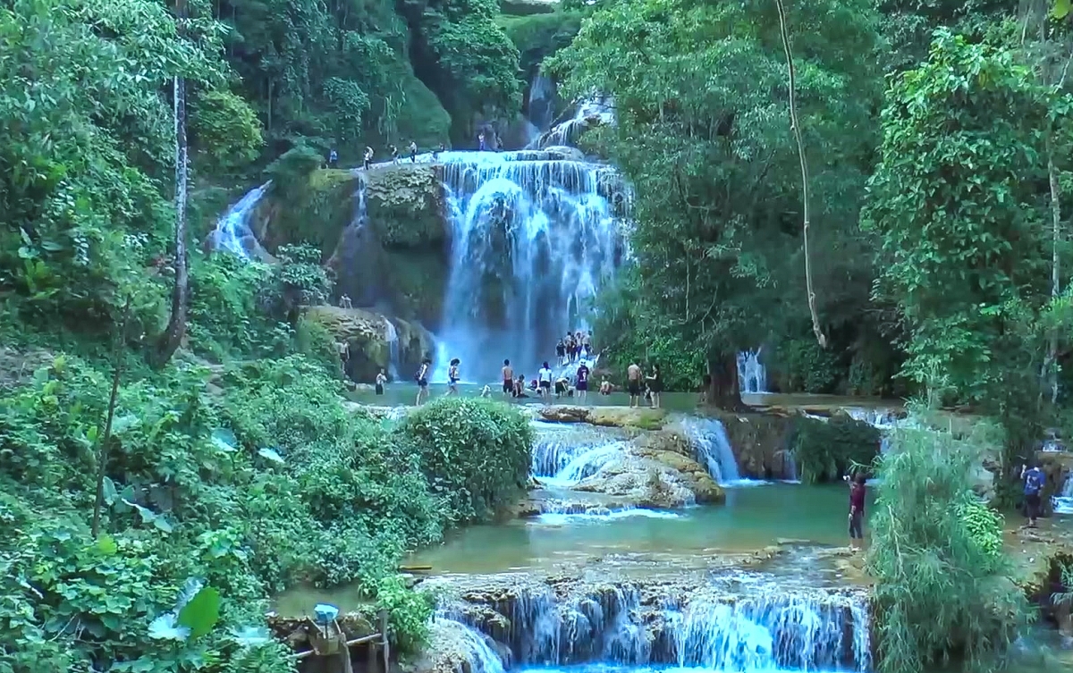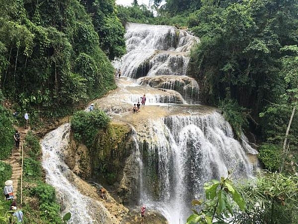Đến thác Mu, du khách được hòa mình vào không gian khoáng đạt của núi rừng. Ảnh: UBND huyện Lạc Sơn |