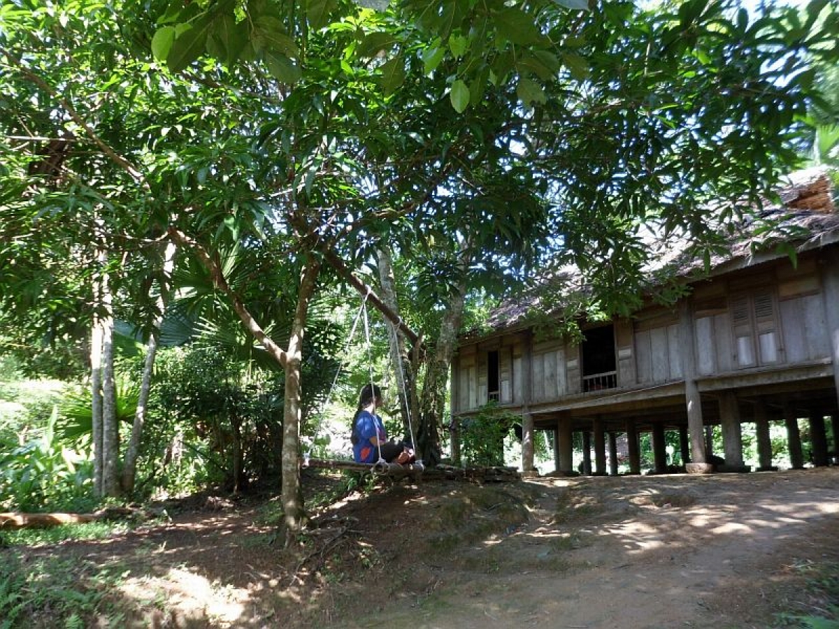 Những ngôi nhà sàn rợp bóng cây ở gần Thác Mu - điểm dừng chân thú vị với du khách. Ảnh: VOV2 |