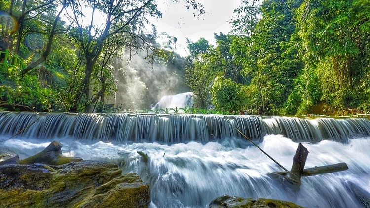Dòng thác trắng xóa như dải lụa vắt từ đỉnh núi xuống tạo ra những đám bụi nước thật đẹp và nên thơ. Ảnh: UBND huyện Lạc Sơn (tỉnh Hòa Bình) |