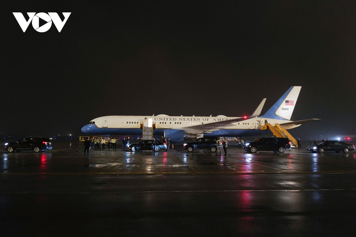 Máy bay của Ngoại trưởng Mỹ Antony Blinken hạ cánh tại Cảng hàng không quốc tế Nội Bài, Hà Nội. |