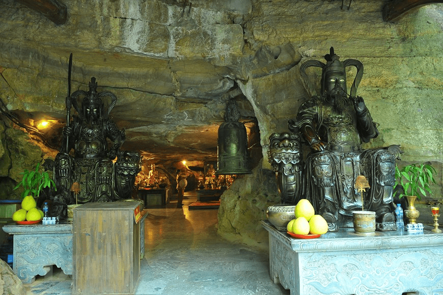 Chùa gồm các điểm tham quan như Giếng Ngọc, Động thờ Tổ sư, Động thờ Phật, Động thờ Mẫu, điện thờ Đức Thánh Nguyễn Minh Không và điện thờ Đức Thánh Cao Sơn. Trong ảnh: Tất cả các ban thờ Phật, thờ Mẫu của chùa Bái Đính cổ đều được đặt giữa lòng những sơn động u minh. Ảnh: Minh Đức/TTXVN