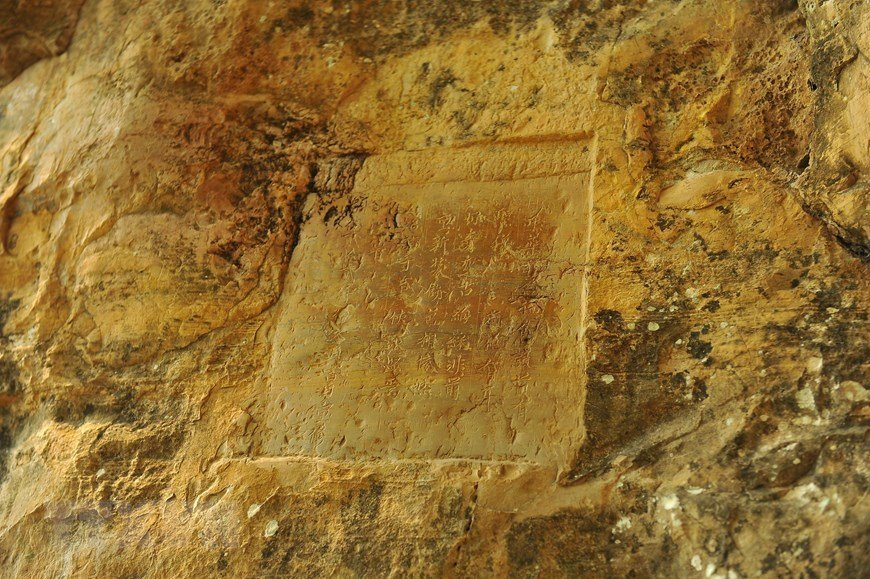 Bài thơ của vua Lê Thánh Tông được tạc trên núi đá. Ảnh: Minh Đức/TTXVN