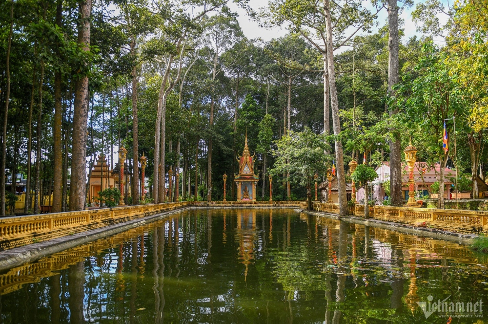 Khuôn viên chùa Âng có diện tích khoảng 4ha, thuộc quần thể thắng cảnh Ao Bà Om, một trong những điểm tham quan du lịch nổi tiếng Trà Vinh. |