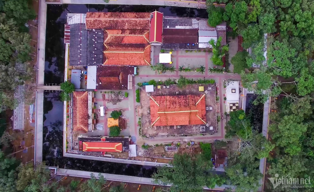 Phần mái chính điện có cấu tạo độc đáo bằng khung gỗ với 3 cấp mái ngói, trong đó 2 mái trên cùng khá cao và dốc. Các diềm mái trang trí hình rồng thân nằm dài, vảy rồng uốn cong. |