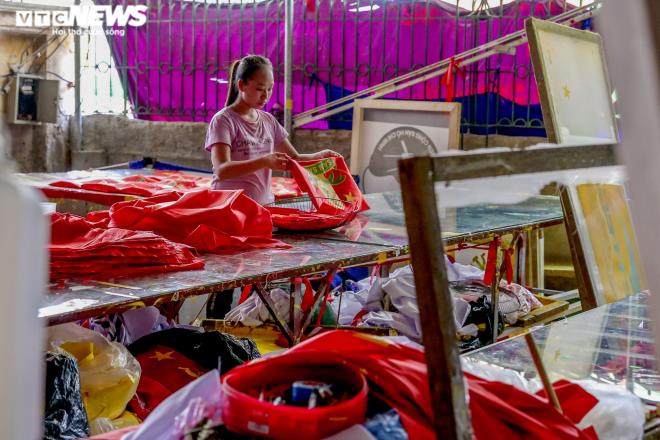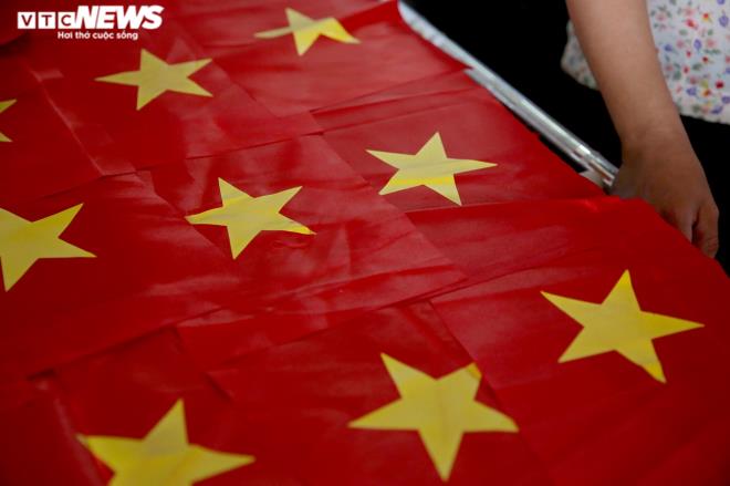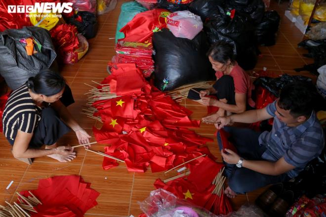 Ngoài lá cờ khổ rộng, những lá cờ đỏ sao vàng kích thước nhỏ, có cán cầm, được khách đặt hàng với số lượng lớn để phục vụ cho ngày khai giảng sắp tới. |
