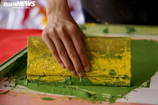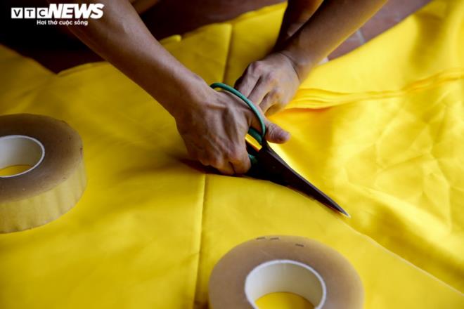 Những công đoạn làm cờ tuy đơn giản nhưng đòi hỏi người làm có tâm huyết để làm ra được sản phẩm vừa bền, vừa đẹp. |