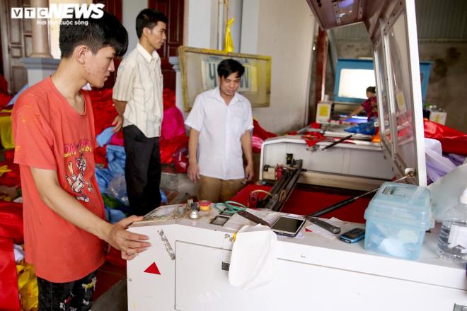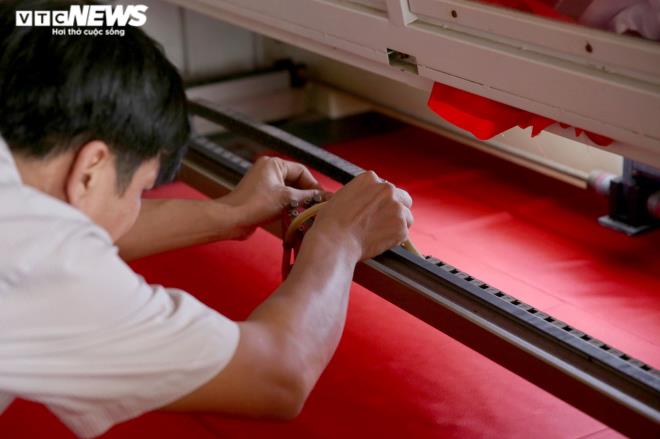 | Với niềm đam mê nghề, nhằm nâng cao năng suất, anh Phục liên tục mua thêm những máy móc hiện đại đưa vào sản xuất, nhờ đó có thể cắt được những lá cờ với kích thước chuẩn trong thời gian ngắn. |