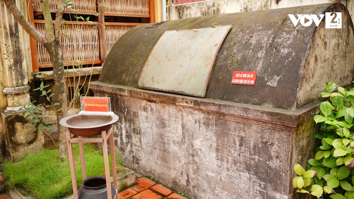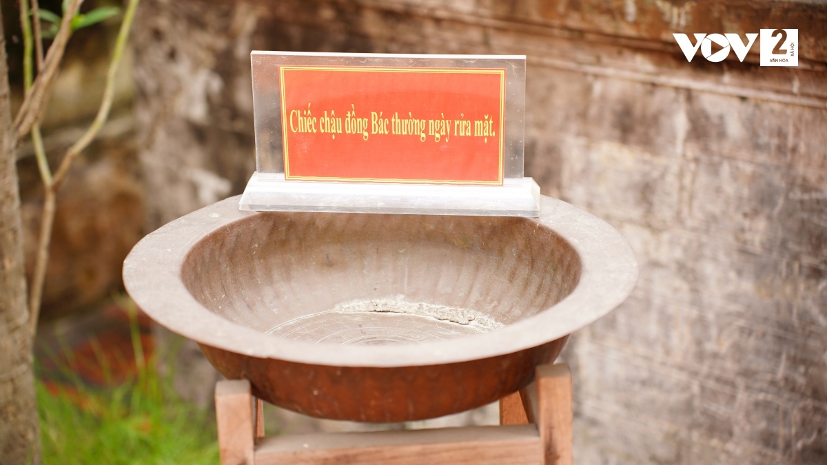 Chiếc chậu đồng, bể nước đặt ngoài sân mà Bác Hồ đã sử dụng. |
