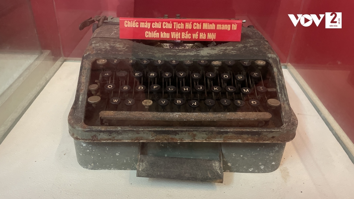 Máy chữ của Chủ tịch Hồ Chí Minh mang từ Chiến khu Việt Bắc về Hà Nội, đặt lưu niệm tại căn nhà. |