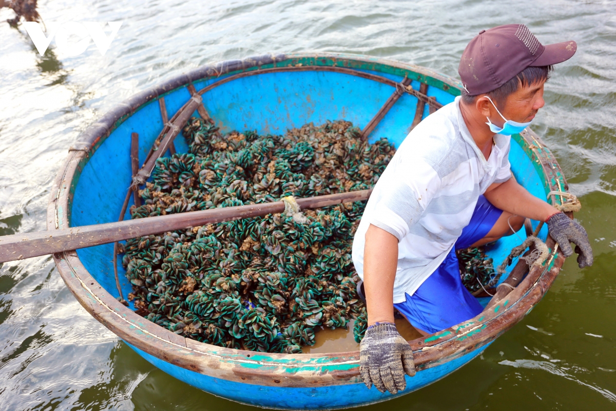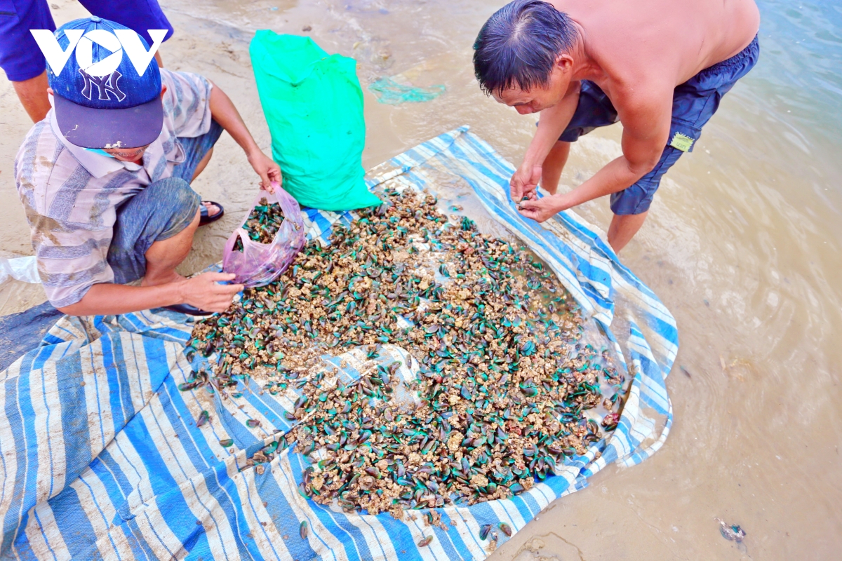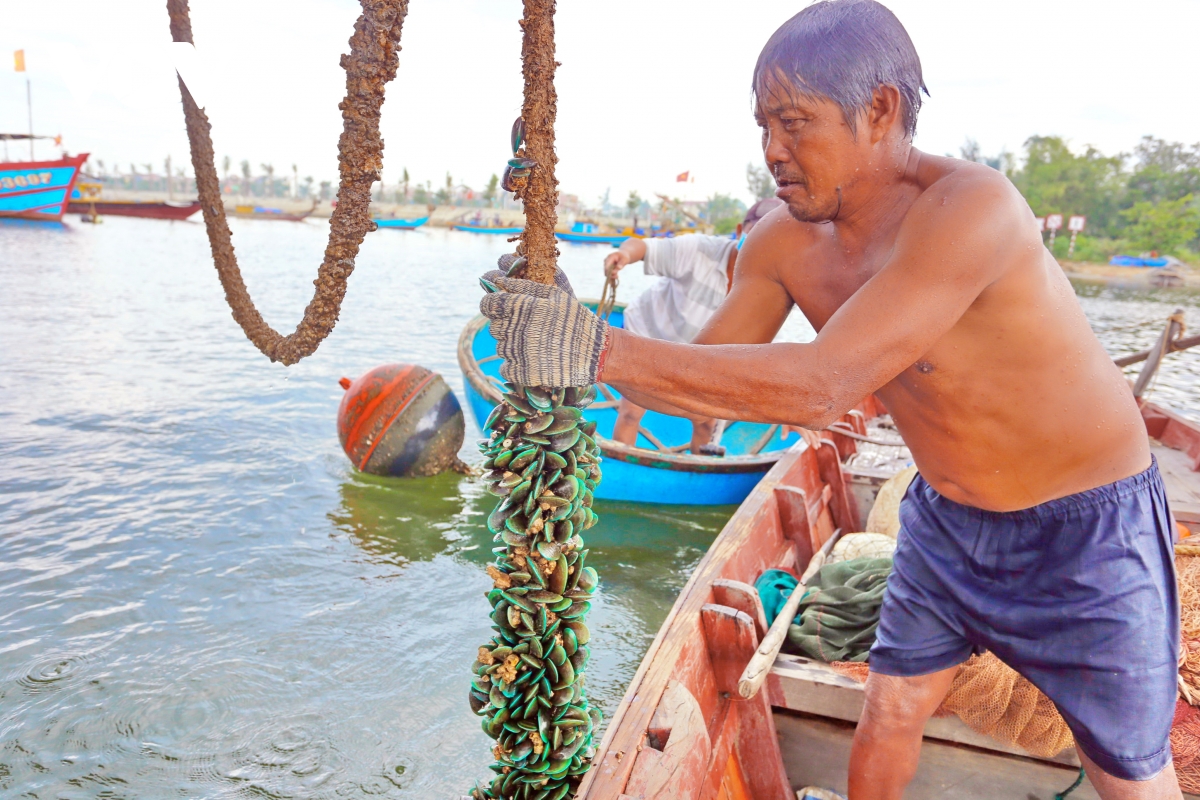 Đến tháng 7 Âm lịch, vẹm xanh trưởng thành, ngư dân tranh thủ khai thác trước khi mùa mưa lũ đến
