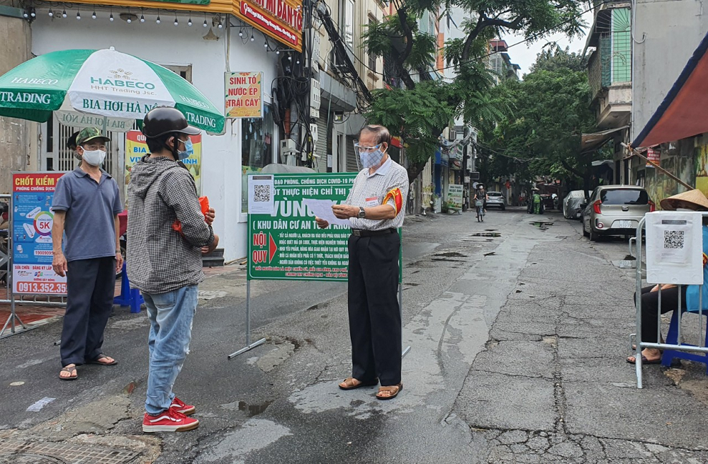 Ông Tống Văn Ngọc ở Hà Nội tham gia chốt trực "Vùng xanh". Ảnh: caugiay.hanoi.gov.vn |