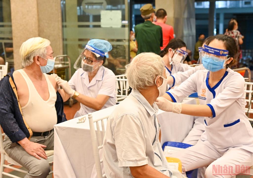 | Tiêm vaccine Covid-19 cho người cao tuổi tại Hà Nội. Ảnh: Báo Nhân dân |