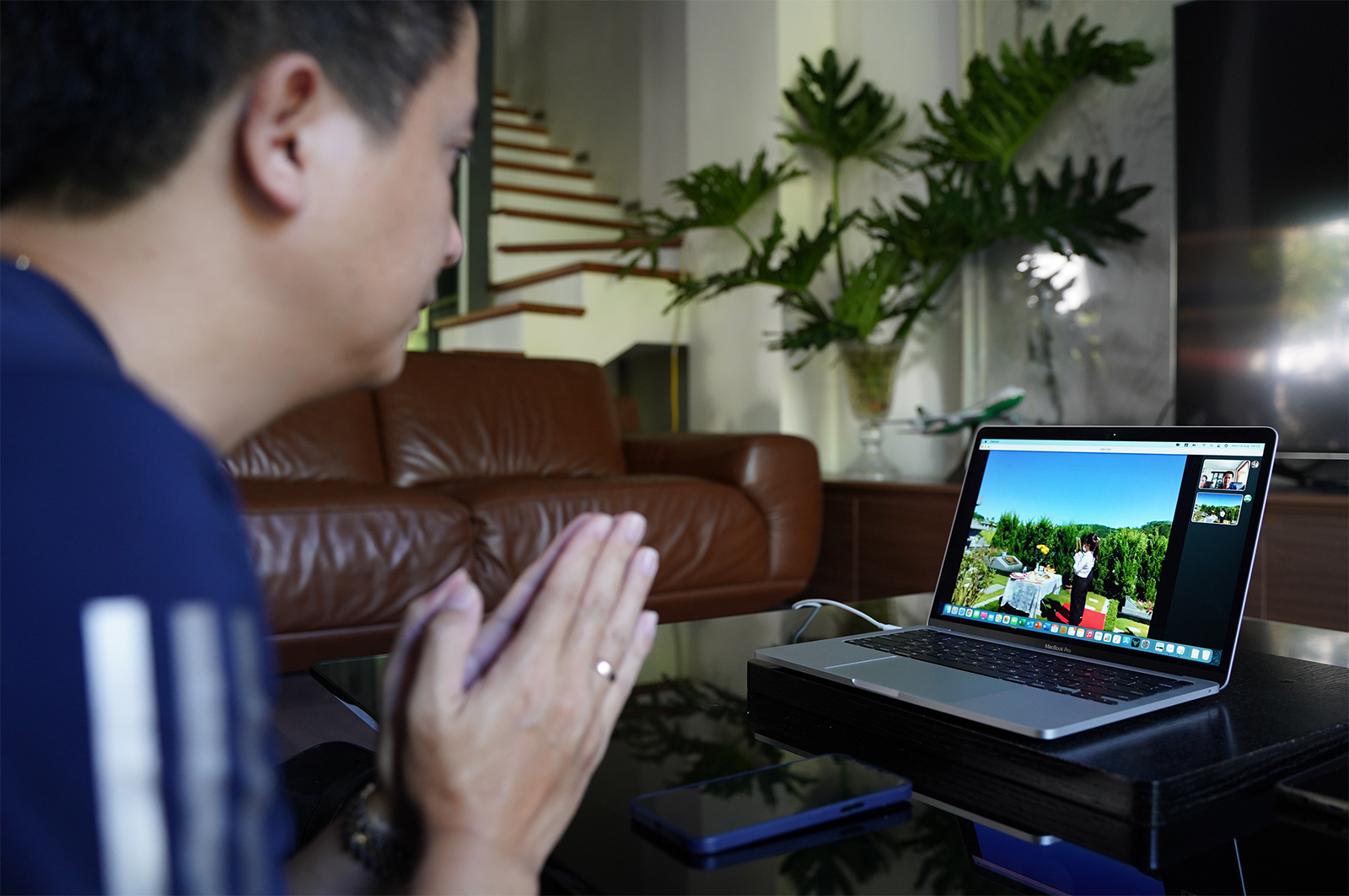 Không thể gặp nhau vì dịch Covid-19, bà Hồng cùng người thân thành kính làm lễ Vu Lan online. Ảnh: Báo Dân Trí