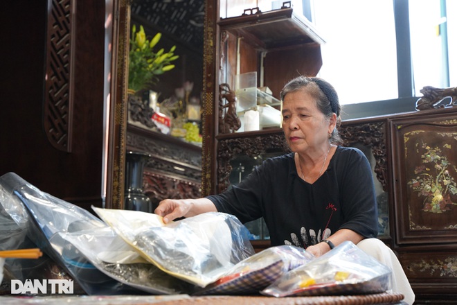 Bà Nguyễn Thị Kim Liên sắp đồ để cúng lễ Vu Lan tại nhà. Ảnh: Báo Dân Trí