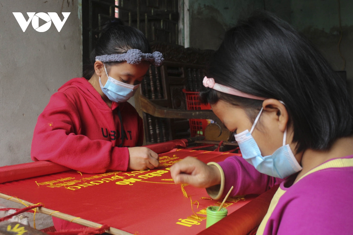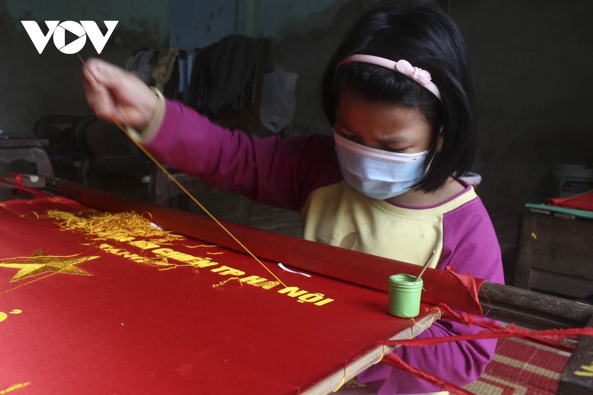 30 năm chuyên thêu cờ Tổ quốc, xưởng sản xuất cờ Nhung Hưởng đã tạo thêm việc làm và thu nhập cho nhiều lao động trong xóm. Ngay cả những em nhỏ trong làng cũng học nghề thêu tay. Các bé có thể tranh thủ lúc nghỉ học phụ giúp bố mẹ, có thêm thu nhập cho gia đình./. |