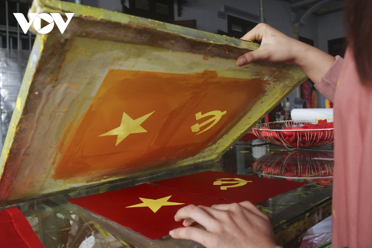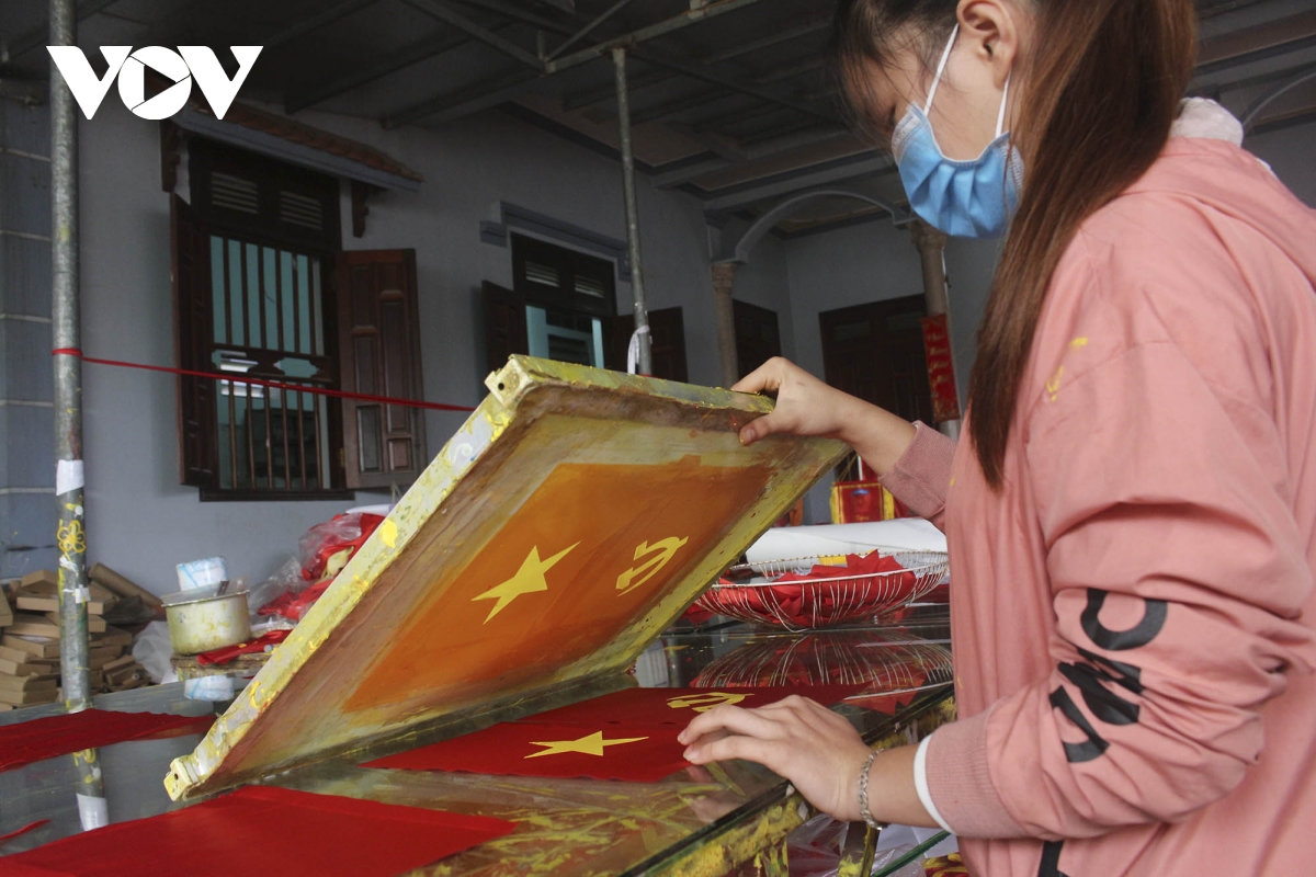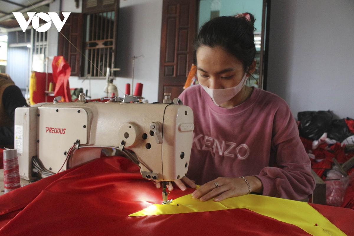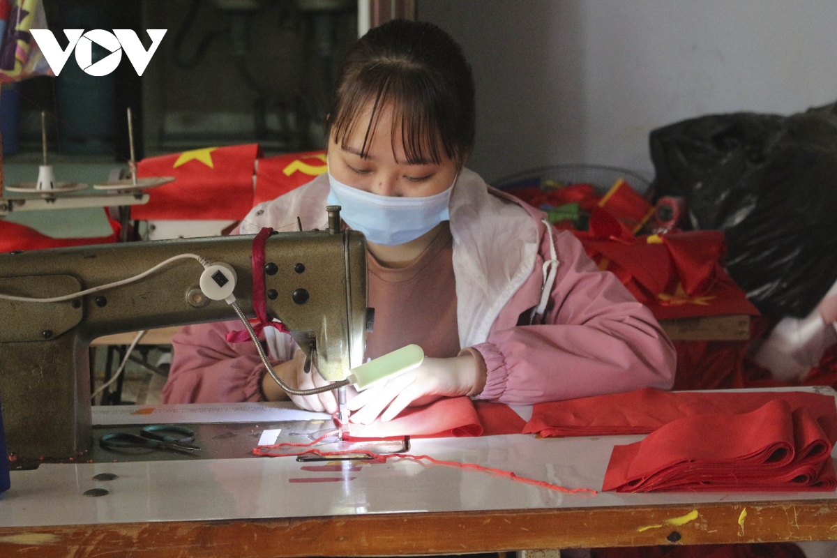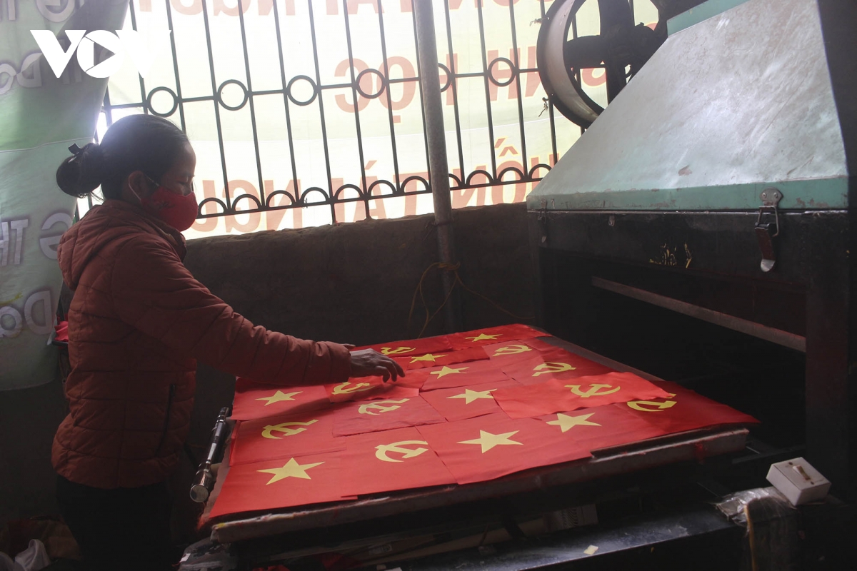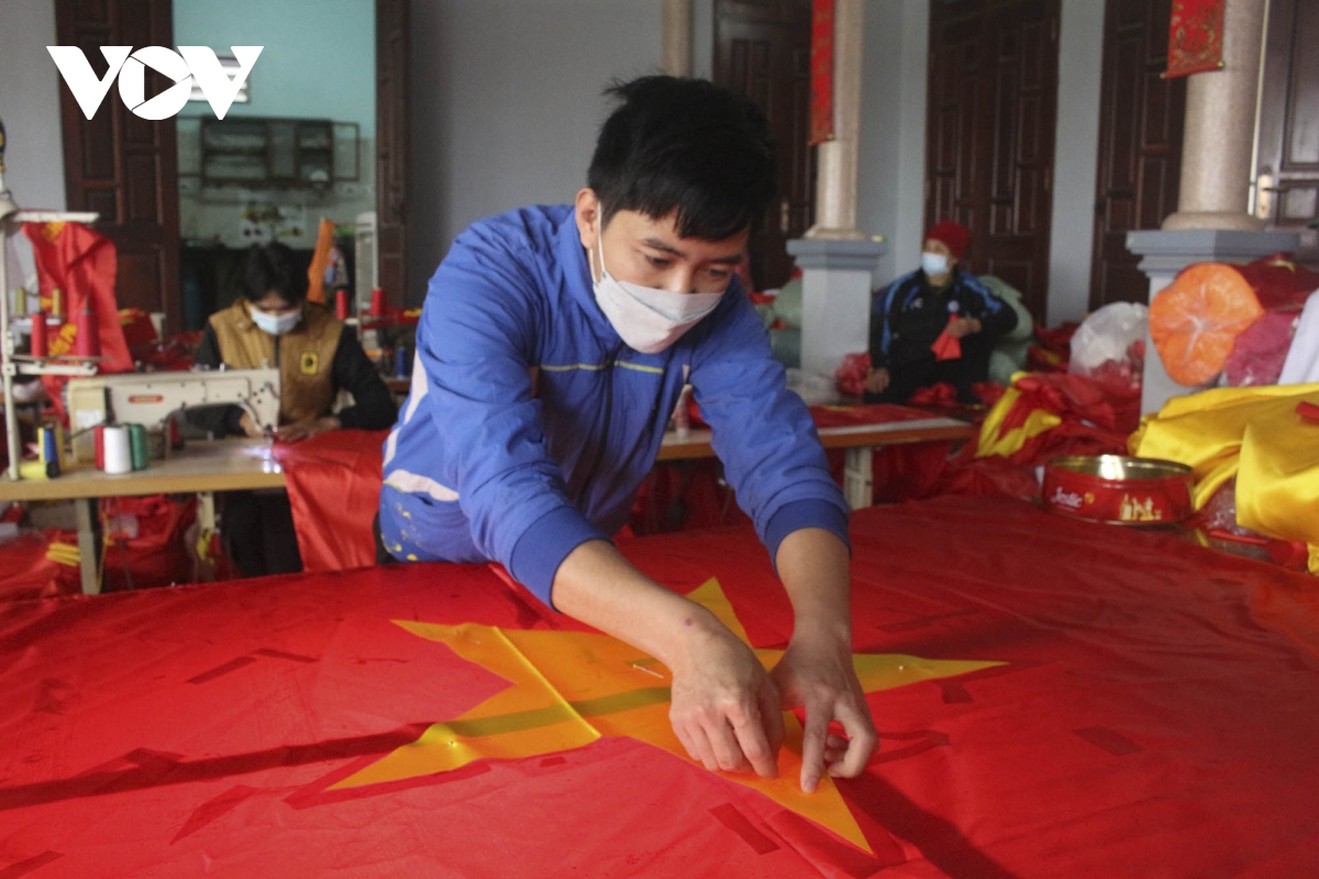 Dịp Tết Nguyên đán đến gần cũng là lúc các gia đình tại làng nghề Từ Vân lại hối hả sản xuất các loại cờ Tổ quốc cung ứng cho thị trường.