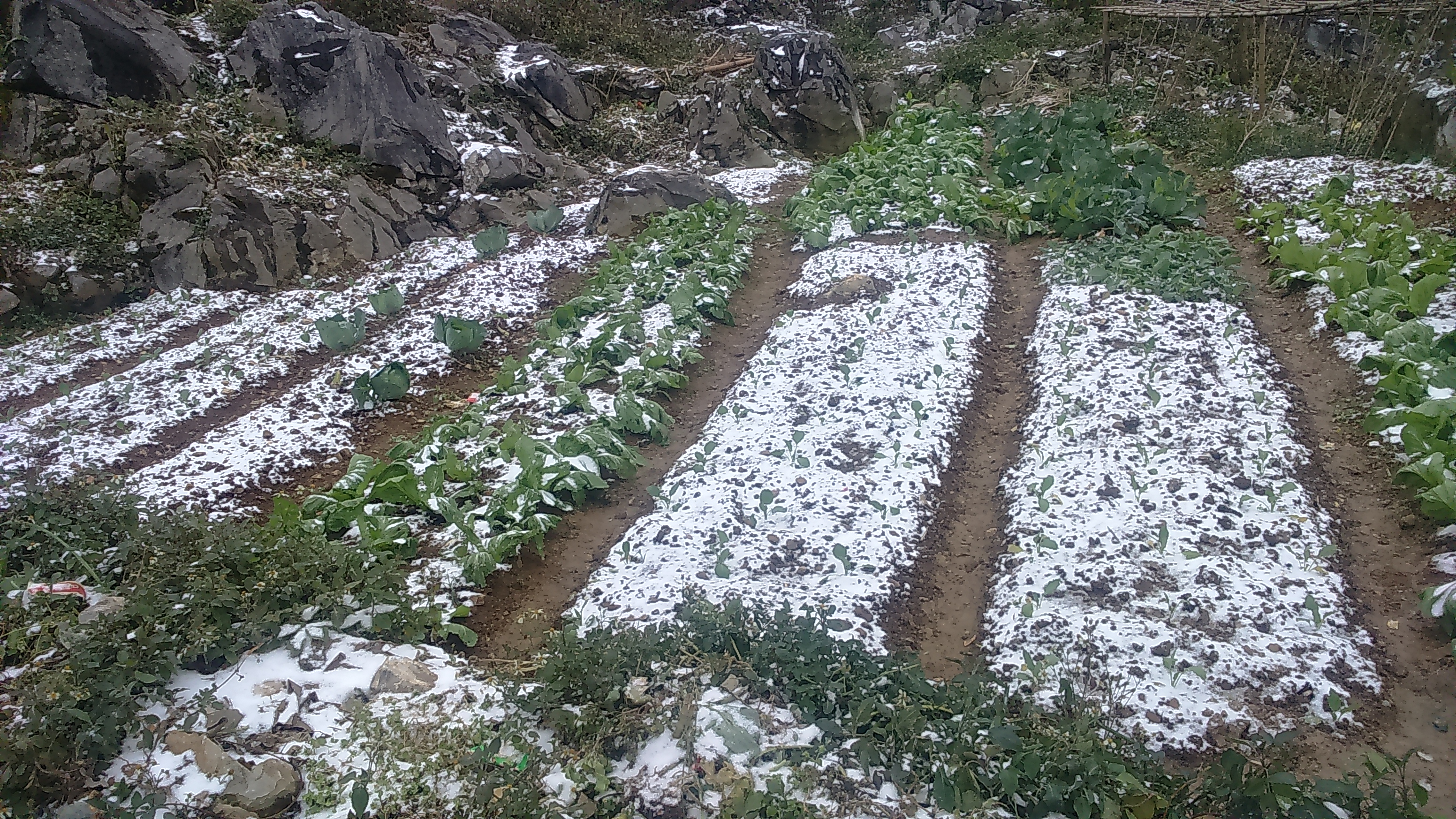 | Băng tuyết làm rau màu của bà con bị thiệt hại nặng nề. |
