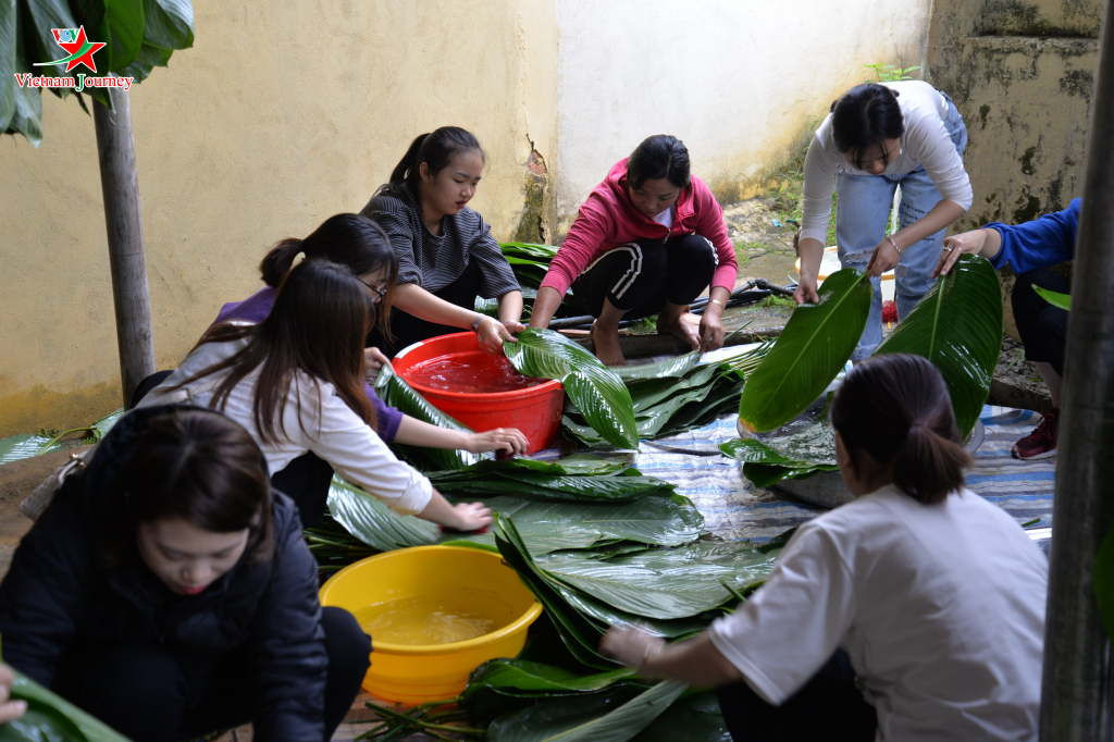 Cùng vo gạo, rửa lá rong, đãi đỗ, gói bánh chưng... |