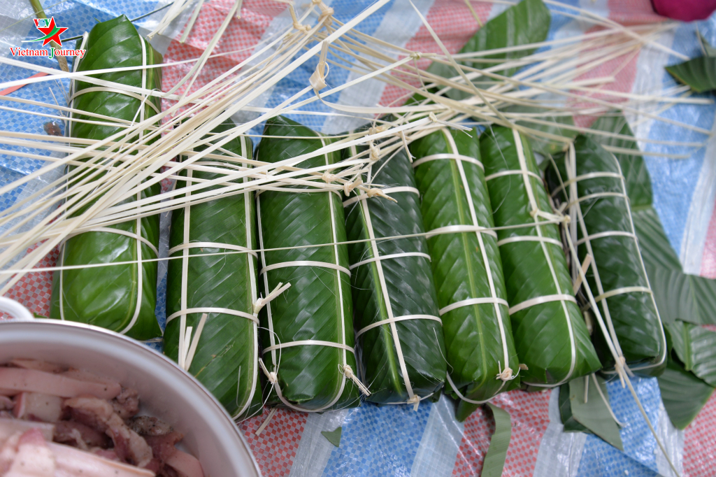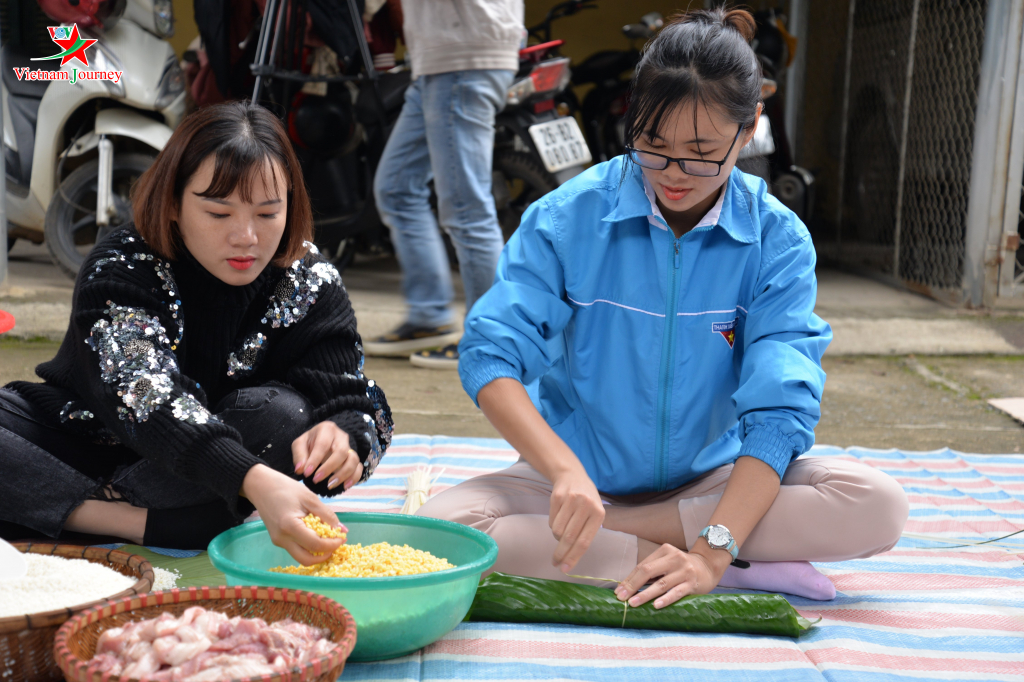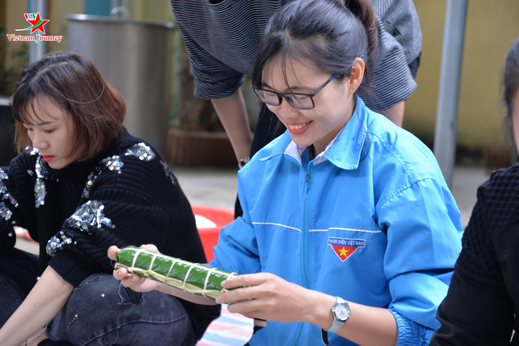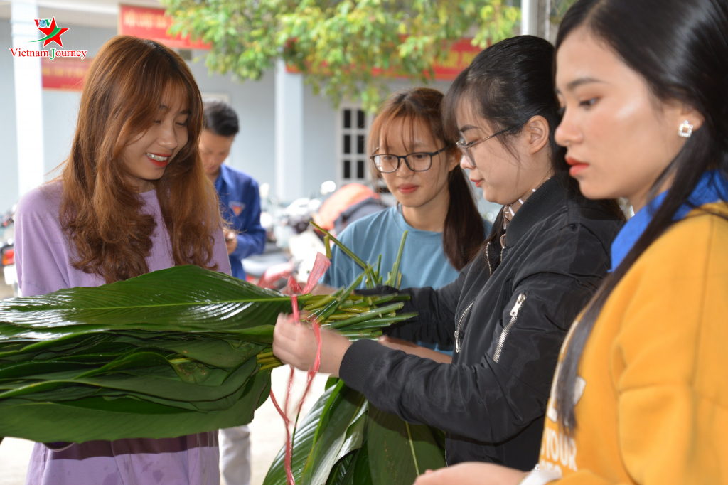 Bánh chưng được gói là bánh chưng tròn, thuận lợi trong tổ chức cứu trợ, dễ vận chuyển, dễ sử dụng |