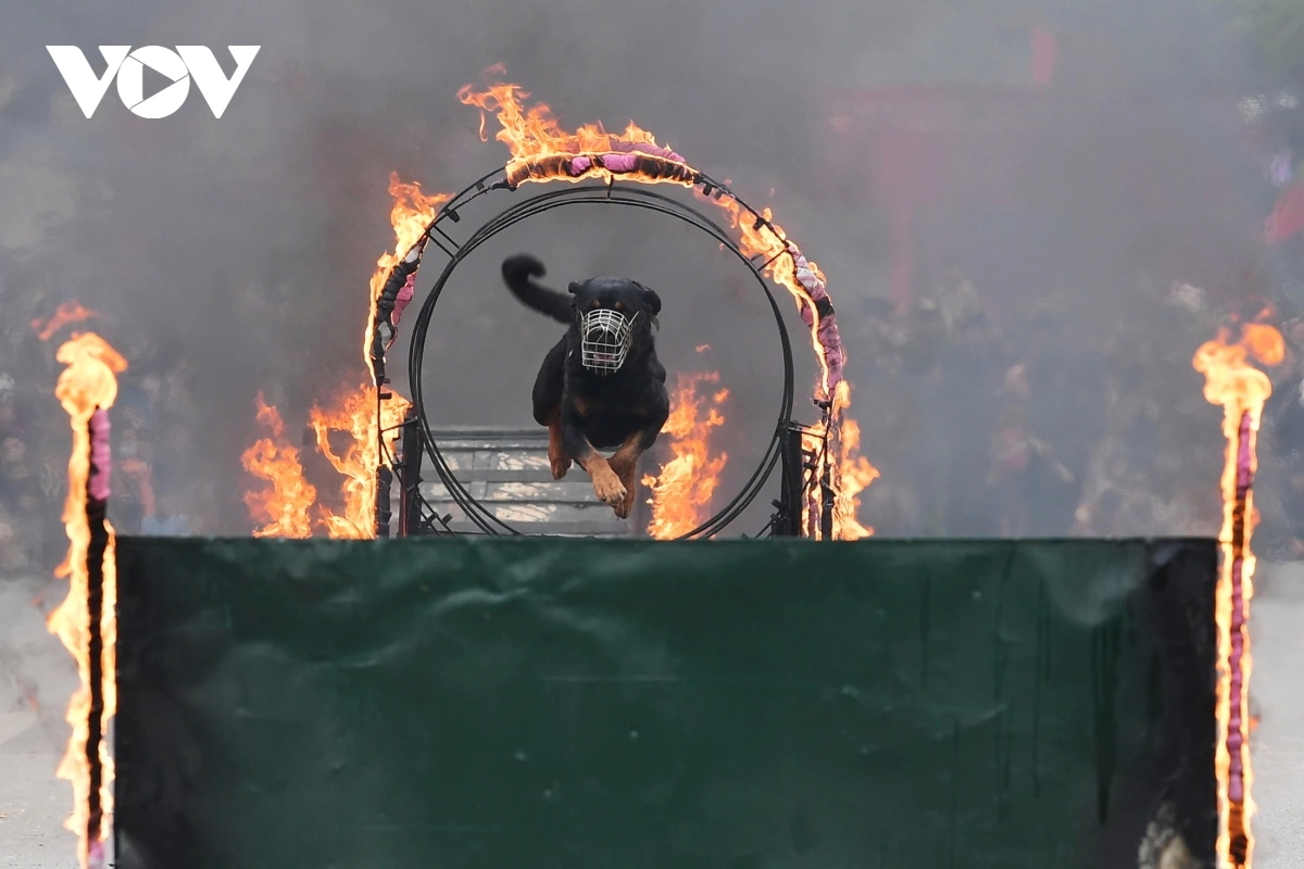 | Lực lượng cảnh khuyển cũng có ngày thứ 2 liên tiếp trình diễn tại phố đi bộ Hồ Gươm. Ảnh: VOV |
