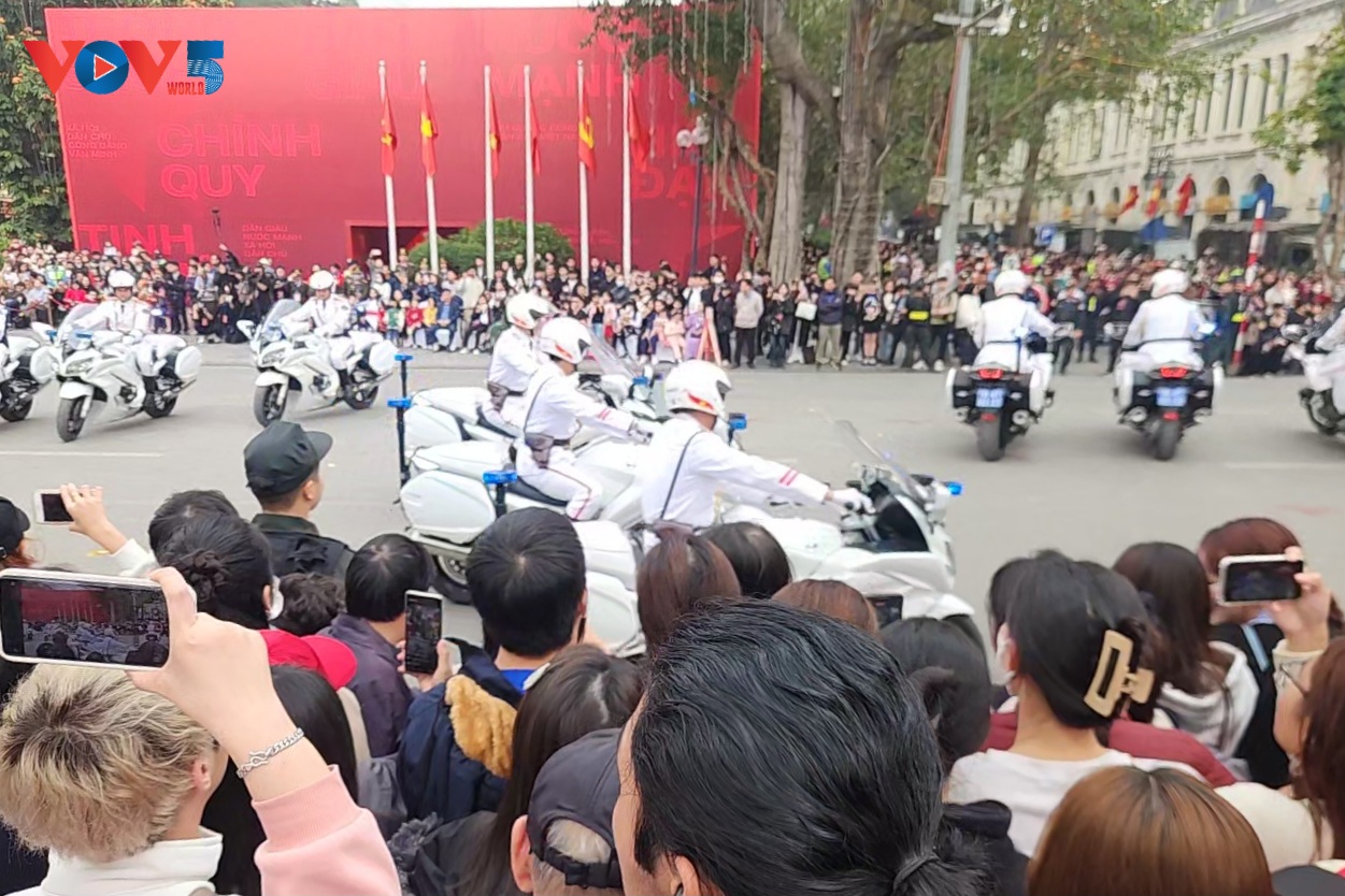| Đông đảo người dân tại phố đi bộ Hồ Gươm đã có trải nghiệm mãn nhãn trong buổi biểu diễn kéo dài khoảng 2 giờ đồng hồ của các chiến sĩ công an. Ảnh: VOV |