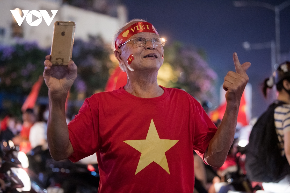 Mọi người tập trung hô vang "Việt Nam vô địch" hay cùng nhau hát những bài hát ăn mừng chiến thắng.