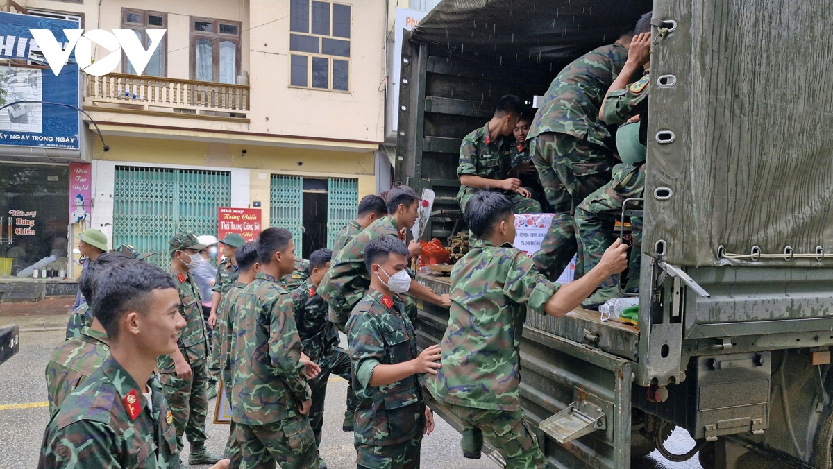 Sau trận mưa và ngập lụt lịch sử do ảnh hưởng của cơn bão số 3, hàng vạn cán bộ, chiến sĩ Quân đội, Công an và dân quân đã được huy động để khắc phục hậu quả tại tỉnh Yên Bái.