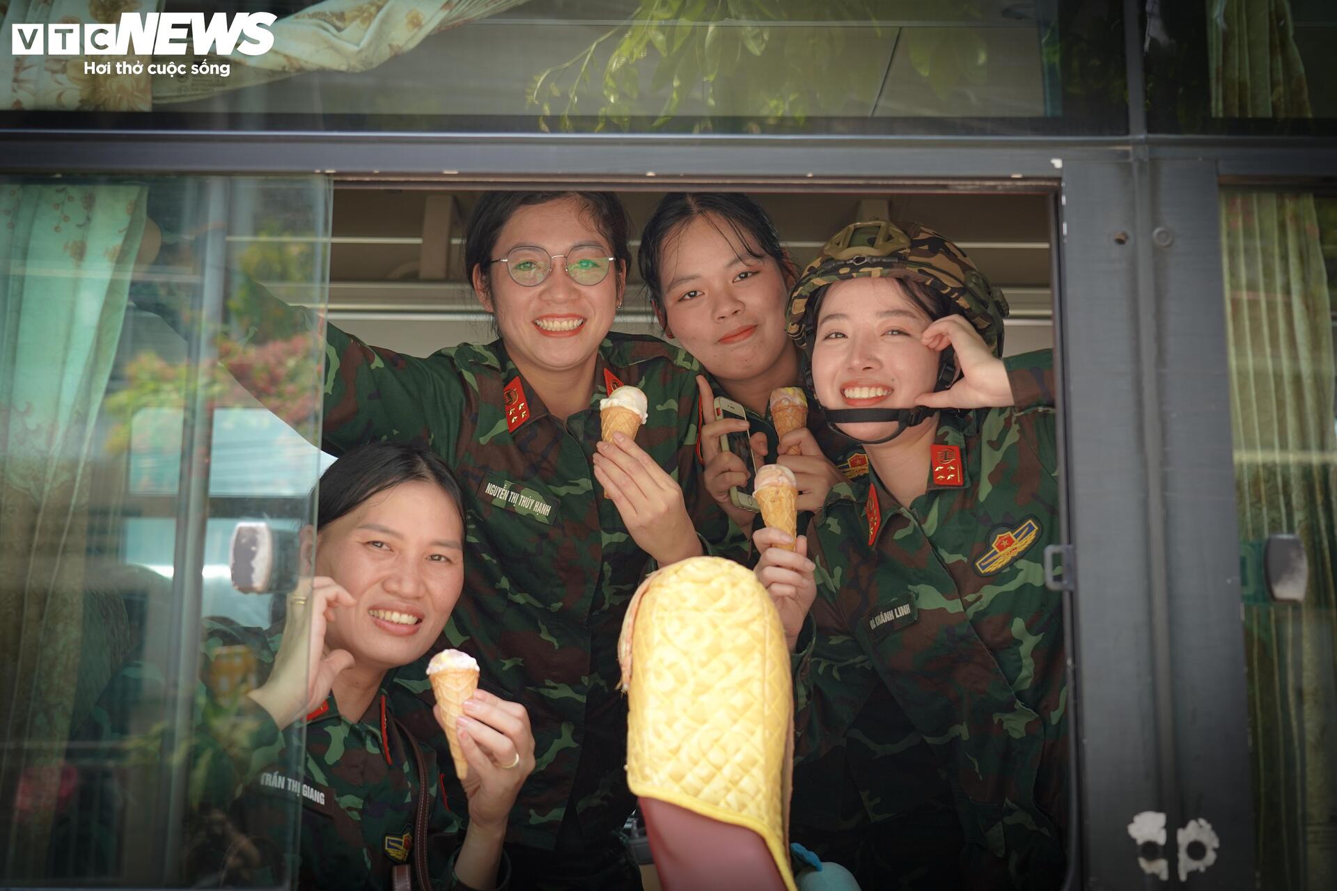 | Trong cái nắng oi ả đặc trưng của phương Nam, các chiến sĩ tham gia luyện tập diễu binh tại Đồng Nai được người dân gửi tới những cây kem mát lạnh như một cách để giải nhiệt. |