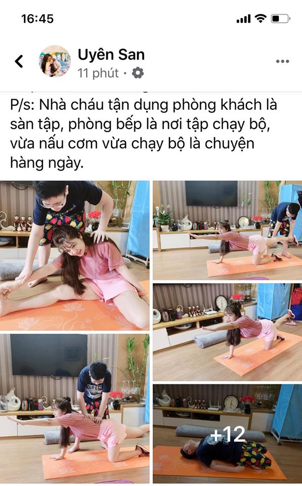 Lan tỏa và đáng yêu nhất có lẽ là những hình ảnh cả gia đình tập luyện. Con trai trở thành huấn luyện viên cho mẹ Uyên San giữ dáng.